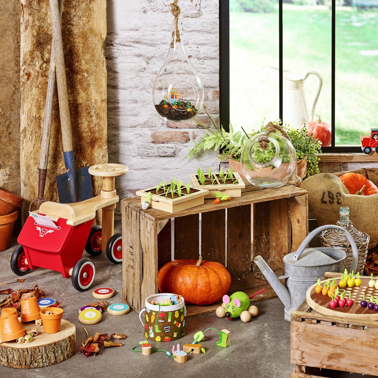 Чи станете ви першим, хто виявить усіх кротів-шкідників? В оригінальну гру можна грати в простіші варіанти з дітьми молодшого віку або як еквівалент стратегічної гри «Кораблі» з групою дітей старшого віку. Ігрові деталі поєднують міцну фанеру, тверду деревину або повсть і інтригуюче та тематично оформлені. Основні характеристики: для 2 гравців, 2 ігрові зони, 2×12 червоних морквин і 2×4 кротів, 2 варіанти гри, також підходять для маленьких дітей, унікальний і привабливий дизайн, короткі інструкції до гри: гравці вільно розміщують кротів і моркву на своїй клумбі. Гравці по черзі йдуть по черзі, вибирають квадрат на квітковій клумбі супротивника та оголошують його (наприклад, C2), дивіться фото оригінальної інструкції. Потім власник клумби видаляє предмет із заданого поля. Якщо на ньому розкривається морква, пора володіти грядкою. Якщо він виявить крота, знову настає черга першого гравця. Переможцем вважається гравець, який знайде 4 кроти на накладці суперника.