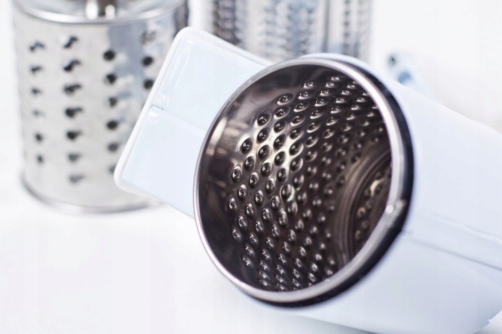 Леза Noyer 5 виготовлені з металу. Його міцну конструкцію також легко обслуговувати. Барабани з різними лопатями виготовлені з нержавіючої сталі. Гвинт для кріплення до стільниці підходить для загвинчування на кромку товщиною не більше 30 мм. У набір входить профільований штовхач інгредієнтів. Завдяки йому ви уникнете травмування рук при шліфуванні їх в бритвенні. Різні леза дозволяють вільно вибирати, чи бажаєте ви для своєї піци скибочки, пюре або крупно натертий сир. Зберігати слайсер Noyer зручно, оскільки виріб має компактні розміри. Ви також забудете про безлад на кухні, який зазвичай супроводжує подрібнення та подрібнення. Продукт рекомендований Ewa Wachowicz. Як амбасадор бренду Konighoffer, вона тепло та з усмішкою рекомендує його для домашнього використання. Разом з ним ви отримаєте свій рецепт для дому. Це один із найкращих варіантів у цій категорії!