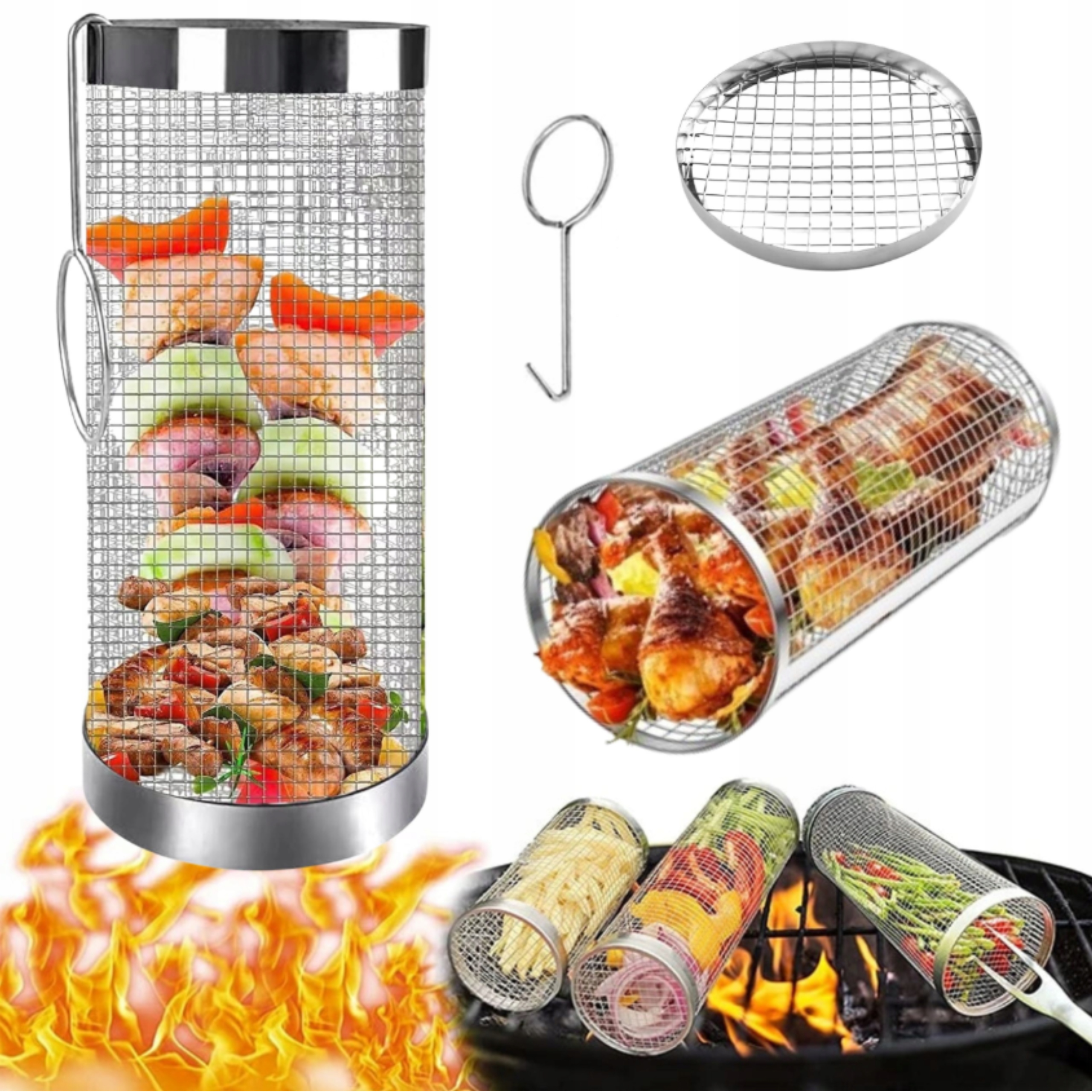 Цей поворотний кошик для барбекю дає вам можливість приготувати різноманітні страви, від хрустких фрі до делікатних овочів.