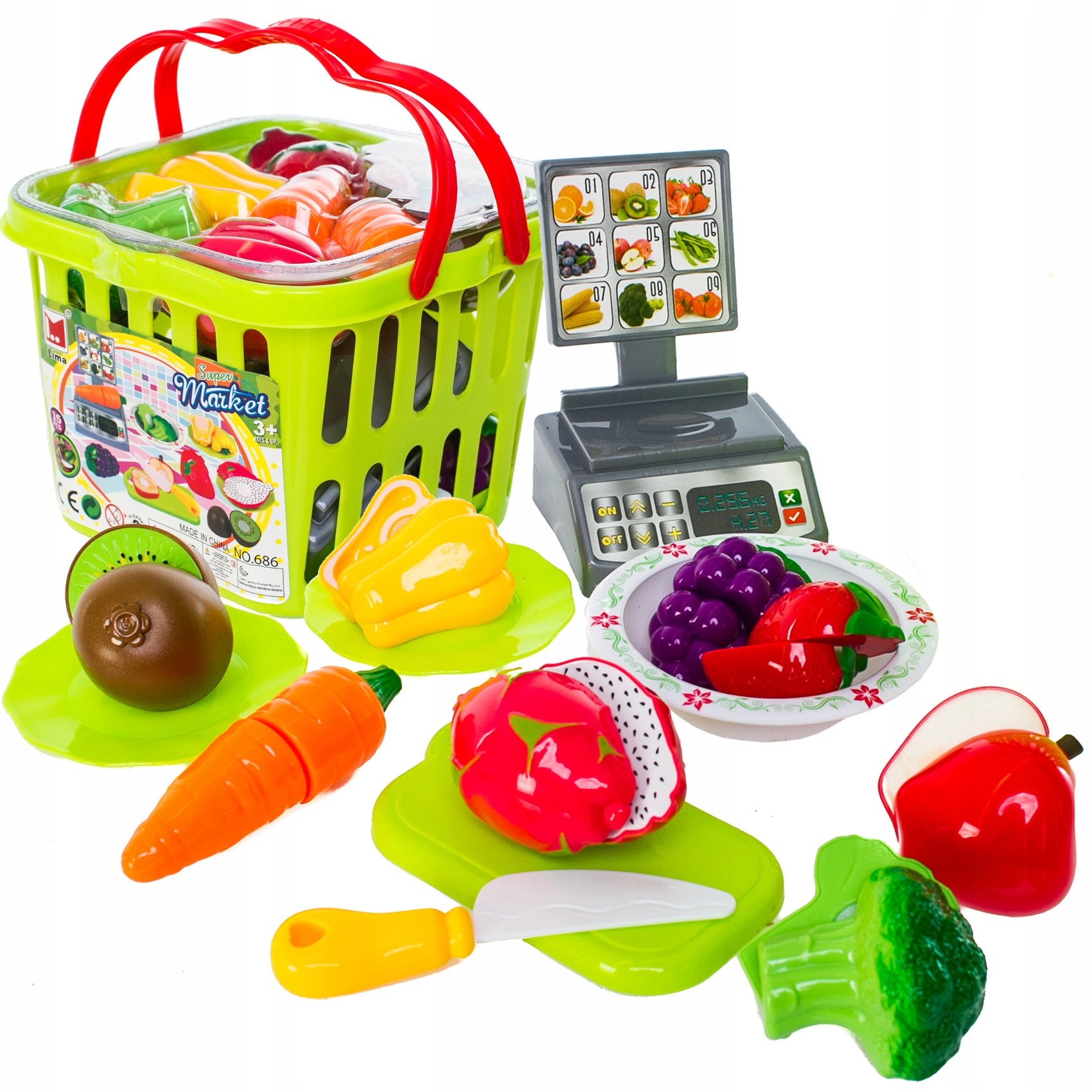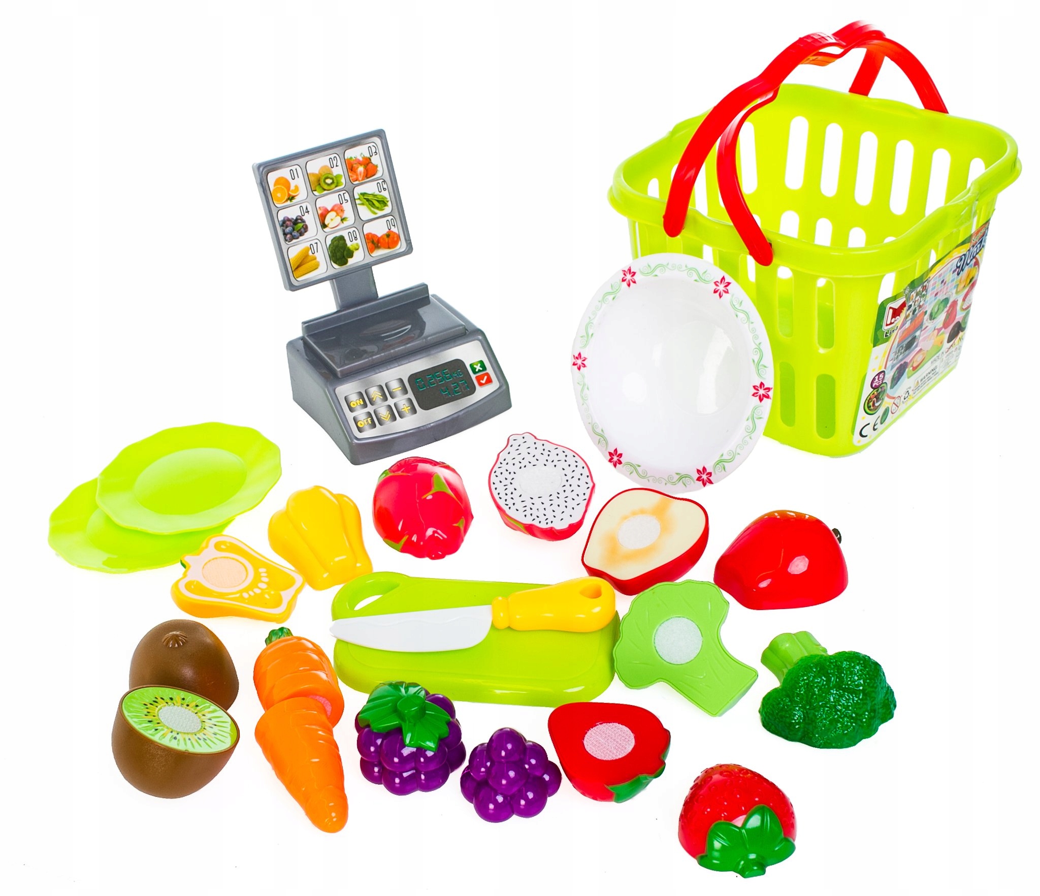 НАБІР - ОВОЧІ ТА ФРУКТИ ДЛЯ РІЗАННЯ + КОШИК ДЛЯ ПОКУПОК І ВАГИ