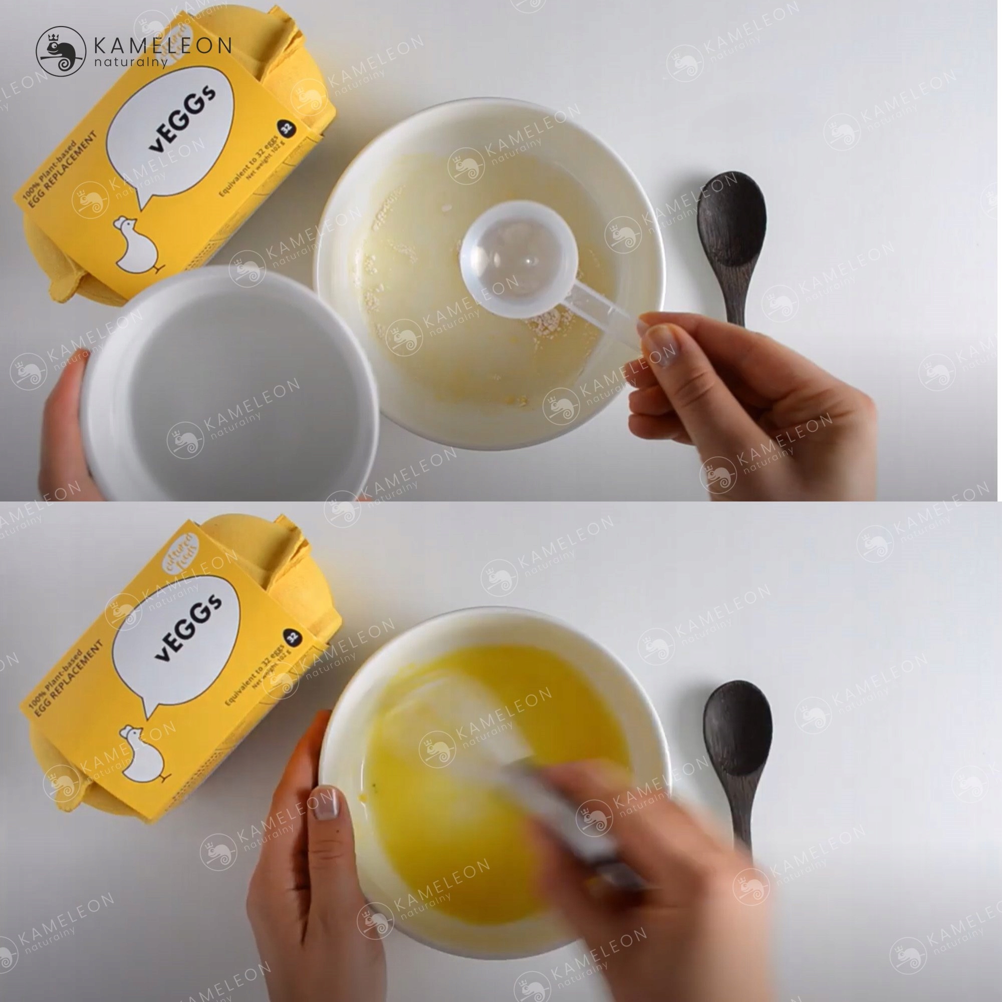 Використовуйте vEGG скрізь,де ви використовуєте яйця для поєднання інгредієнтів. Ідеально підходить для тортів, печива, млинців, оладок, картопляних оладок, овочевих гамбургерів , котлети з фаршу, панірувальні сухарі, локшина, домашні макарони, ліниві макарони чи тісто для вареників...
