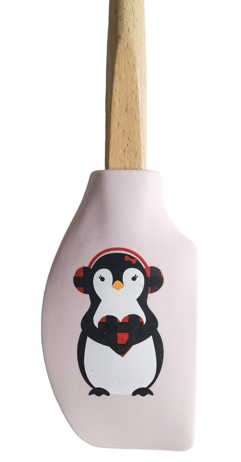 OVS СИЛІКОНОВИЙ ЧОВНИК ДЛЯ ТІСТА З ДЕРЕВ'ЯНОЮ РУЧКОЮ ПІНГВІН