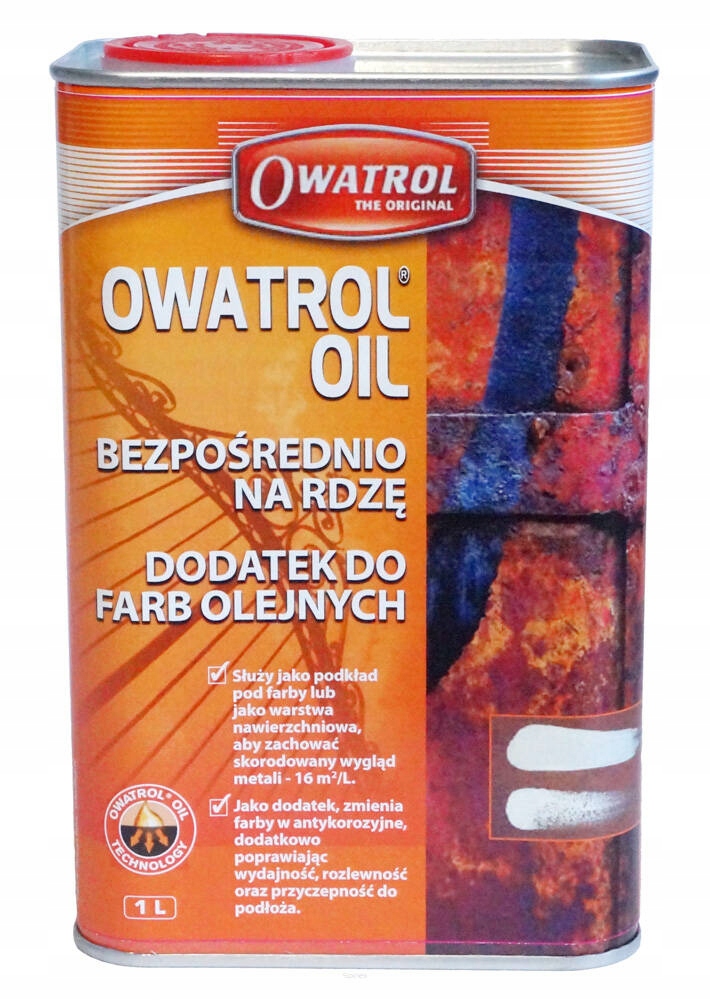 RUSTOL OWATROL Oil - інгібітор іржі, який використовується більше 50 років у всьому світі. Компонент систем антикорозійного захисту сталевих виробів, які піддаються впливу шкідливих атмосферних, промислових і морських факторів. Більшість антикорозійних грунтовок вимагають ретельного видалення іржі, і їх не рекомендується використовувати на корозійних поверхнях. RUSTOL OWATROL є одним із небагатьох засобів, які можна безпечно наносити безпосередньо на корозійні поверхні, а також з великим успіхом використовувати як альтернативу піскоструминній обробці. OWATROL створює ідеальний бар'єр проти погодних умов, стабілізує та проникає в покриття. Одноразове фарбування, занурення або розпилення створює дуже міцний захисний шар. Навіть через багато місяців покриття OWATROL є ідеальною основою для фінішного покриття. OWATROL дуже швидко змочує поверхню, миттєво проникає у пошкодження, глибоко проникає в корозію до чистого металу. Утворює довговічне покриття, яке створює дуже щільний бар’єр для повітря та вологи.