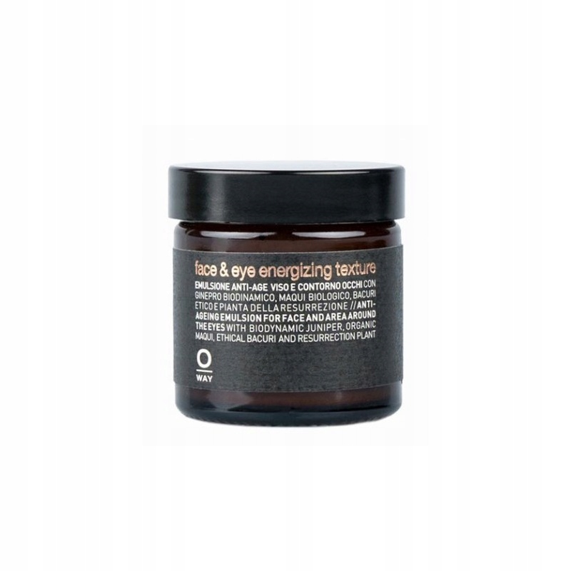 - Oway Face & Eye Energizing Texture 50ml - Енергетичний крем для обличчя та області навколо очей, який зволожує та покращує зовнішній вигляд шкіри, надаючи їй свіжий, сяючий вигляд. Продукт, збагачений біодинамічною рослиною меліси та органічною олією баобаба, має заспокійливу, зволожуючу та стимулюючу дію, мінімізуючи втому шкіри. Допомагає розгладити дрібні зморшки та підтягнути шкіру навколо очей, роблячи її сяючою та відпочилою. Ідеально підходить для використання вранці або для регенерації після довгого дня.