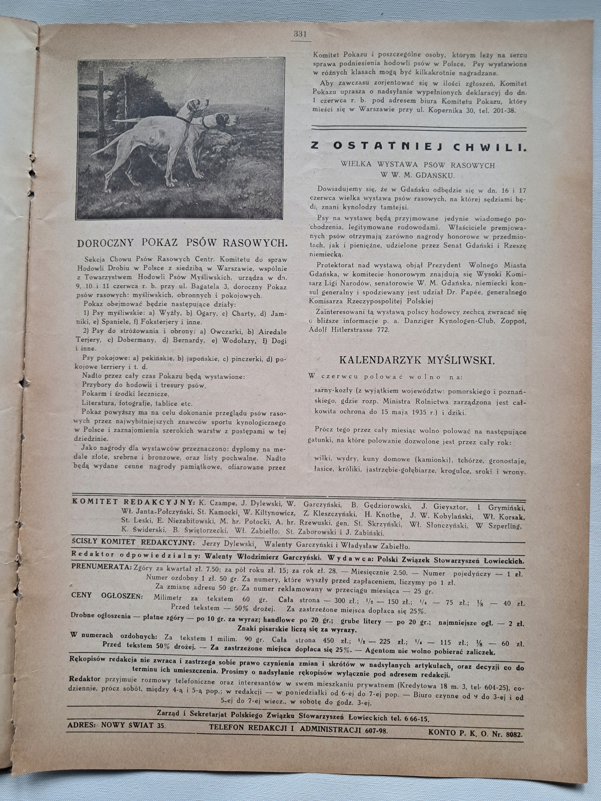 Łowiec Polski № 16/34 полювання на глухарів і тетеревів, породистих собак.