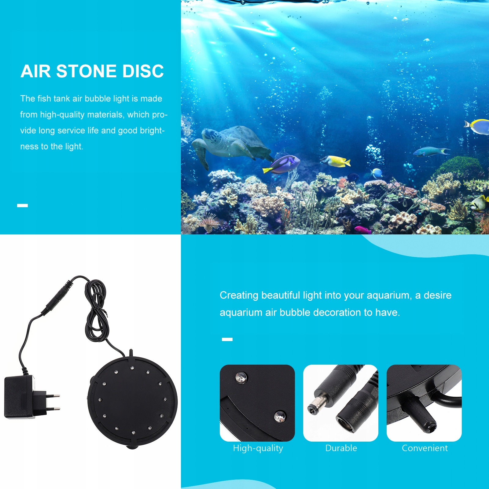 ✅ Акваріумна бульбашка виготовлена з високоякісних матеріалів, які забезпечують тривалий термін служби та хорошу яскравість світла.