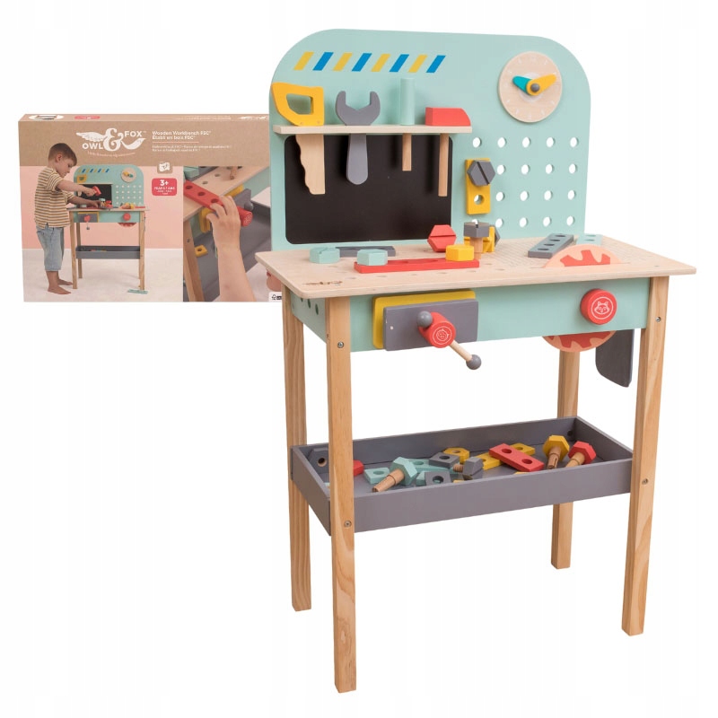 OWL&FOX DREWNIANY WARSZTAT Z NARZĘDZIAMI ZABAWKA EDUKACYNA MONTESSORI
