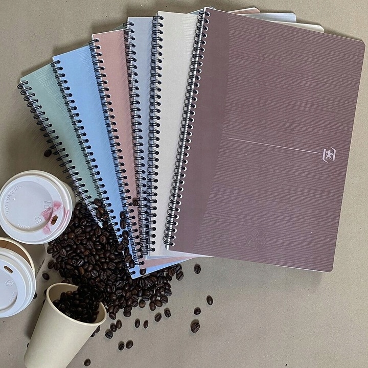 Екологічні блокноти з колекції My Rec'up — це елегантність і турбота про навколишнє середовище в одному. Технологія Cupcycling TM дозволяє використати використані чашки для кави та чаю та дати їм ще одне життя в обкладинках колекції My rec'up. . Ніжні, природні та пастельні кольори відповідають актуальним модним тенденціям. Високоякісні вироби з використанням подвійної спіралі забезпечують комфорт використання. М'які картонні обкладинки в приглушених кольорах ідеально вписуються в екологічно чисті обкладинки з перероблених чашок для кави та чаю . Теги в кутах сторінок і спеціальний додаток Scribzee® дозволяє сканувати нотатки за допомогою мобільних пристроїв Silky smooth Optik Paper