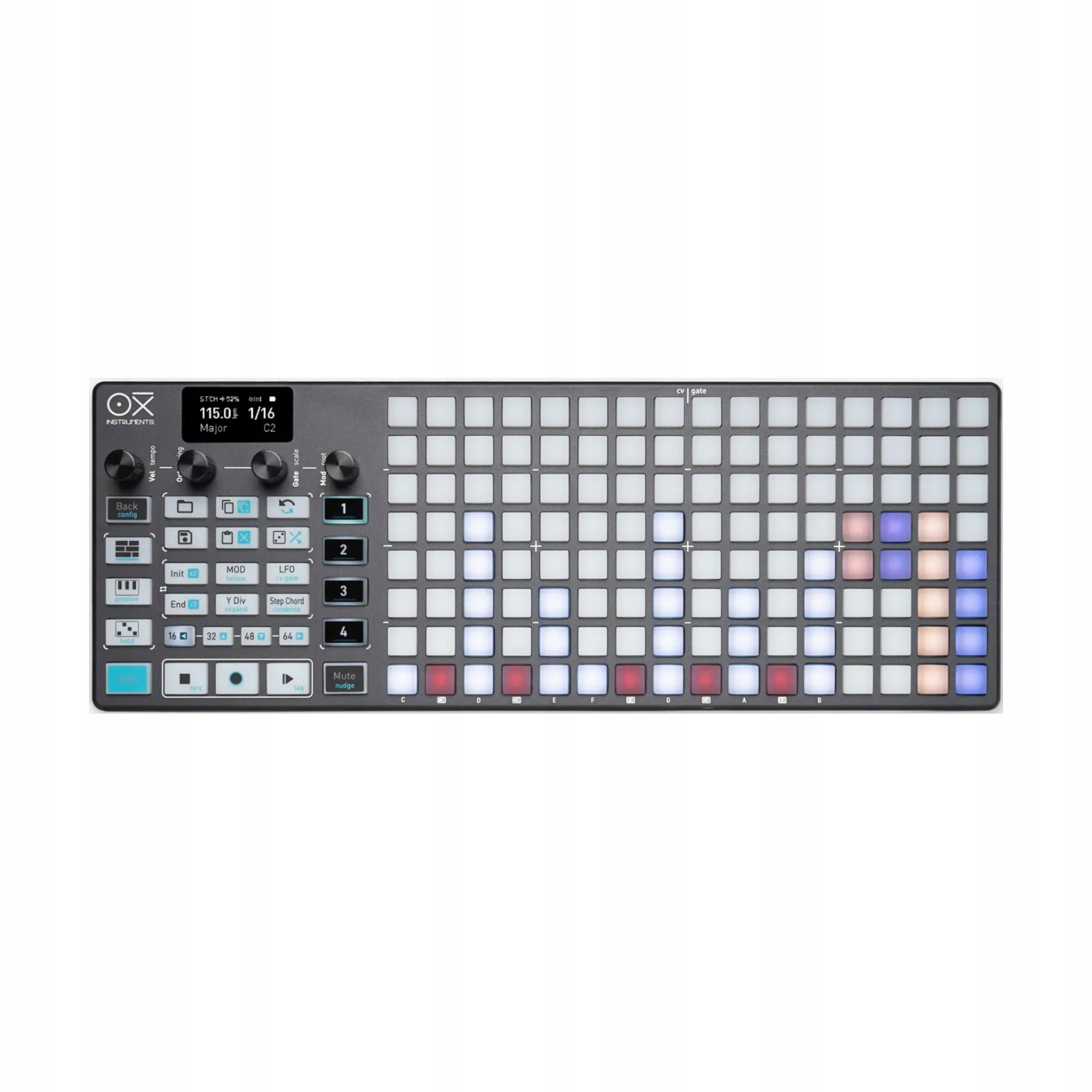 Oxi Instruments One — це багатодоріжковий секвенсор для MIDI, CV/Gate і DAW. Конструкція пристрою розроблена таким чином, що в одному пристрої доступні чотири повністю настроювані секвенсори. Це дозволяє легко створювати секвенсори з чотирма пристроями та 32 треками відповідно, залежно від вибраного режиму для кожного секвенсора. Є шість різних режимів на вибір: Multi (8 доріжок, ідеально підходить, наприклад, для драм-треків), Chord (до 8 голосів), Mono, Polyphonic (до 7 голосів), Stochastic (довільний) і Metriceal (генеративна імпровізація). Кожен секвенсор може мати власну тривалість, напрямок руху та розмір перемішування. Крім того, кожен секвенсор має два LFO, петлю та арпеджіатор із 15 режимами та широкими можливостями налаштування.