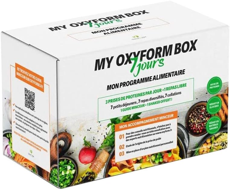 - СХУДНІТЬ ЗА ДОПОМОГОЮ OXYFORM BOX - розроблений, щоб поєднати задоволення та результативність для орієнтовної втрати ваги від 3 до 5 кілограмів. Ця програма харчування включає 3 дози протеїну та 1 безкоштовний прийом їжі на день.