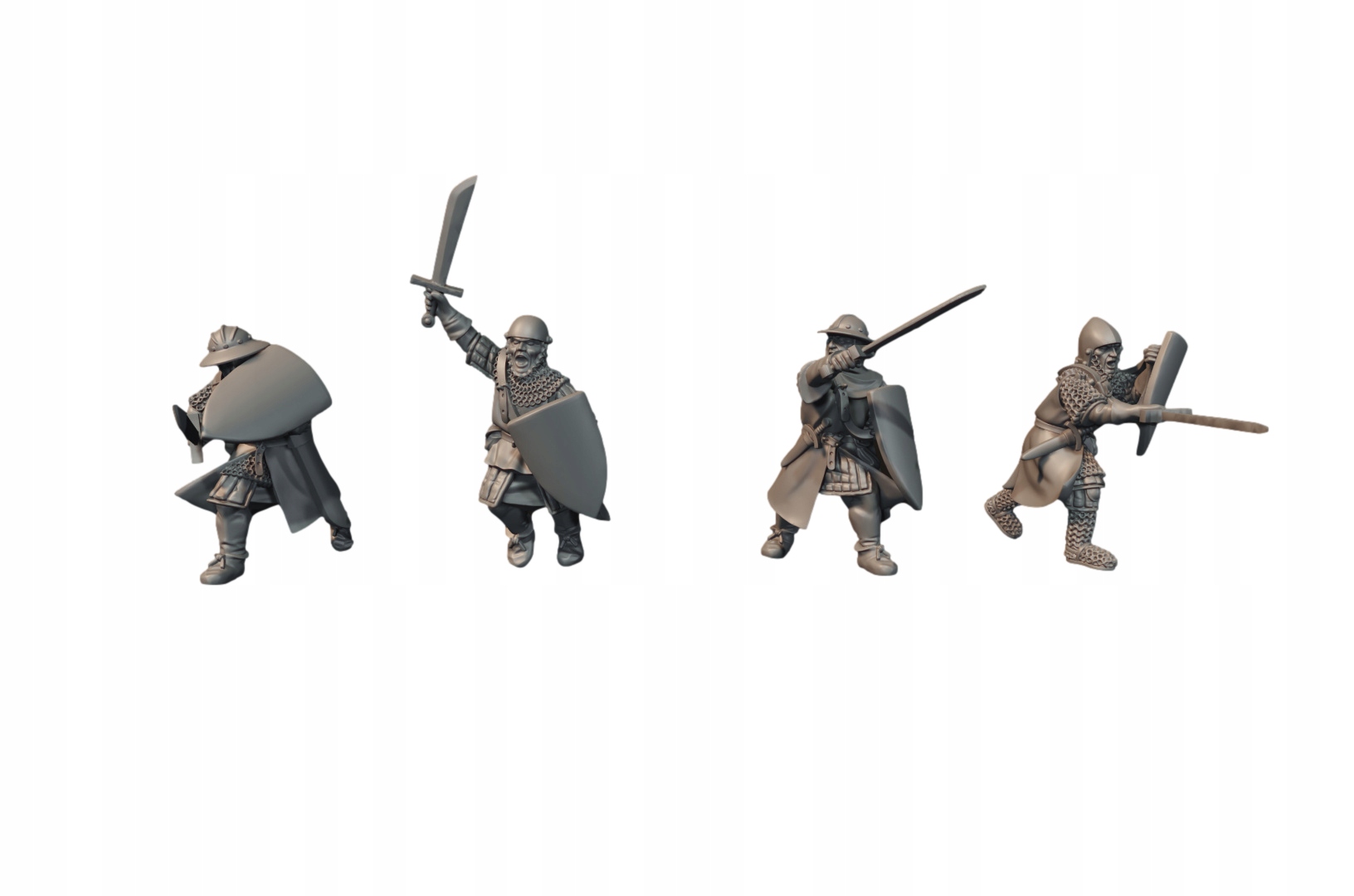 Озброєні люди початку 14 століття з Falchions – 4x – Сервісні фігурки для 3D-друку для рольових або бойових ігор