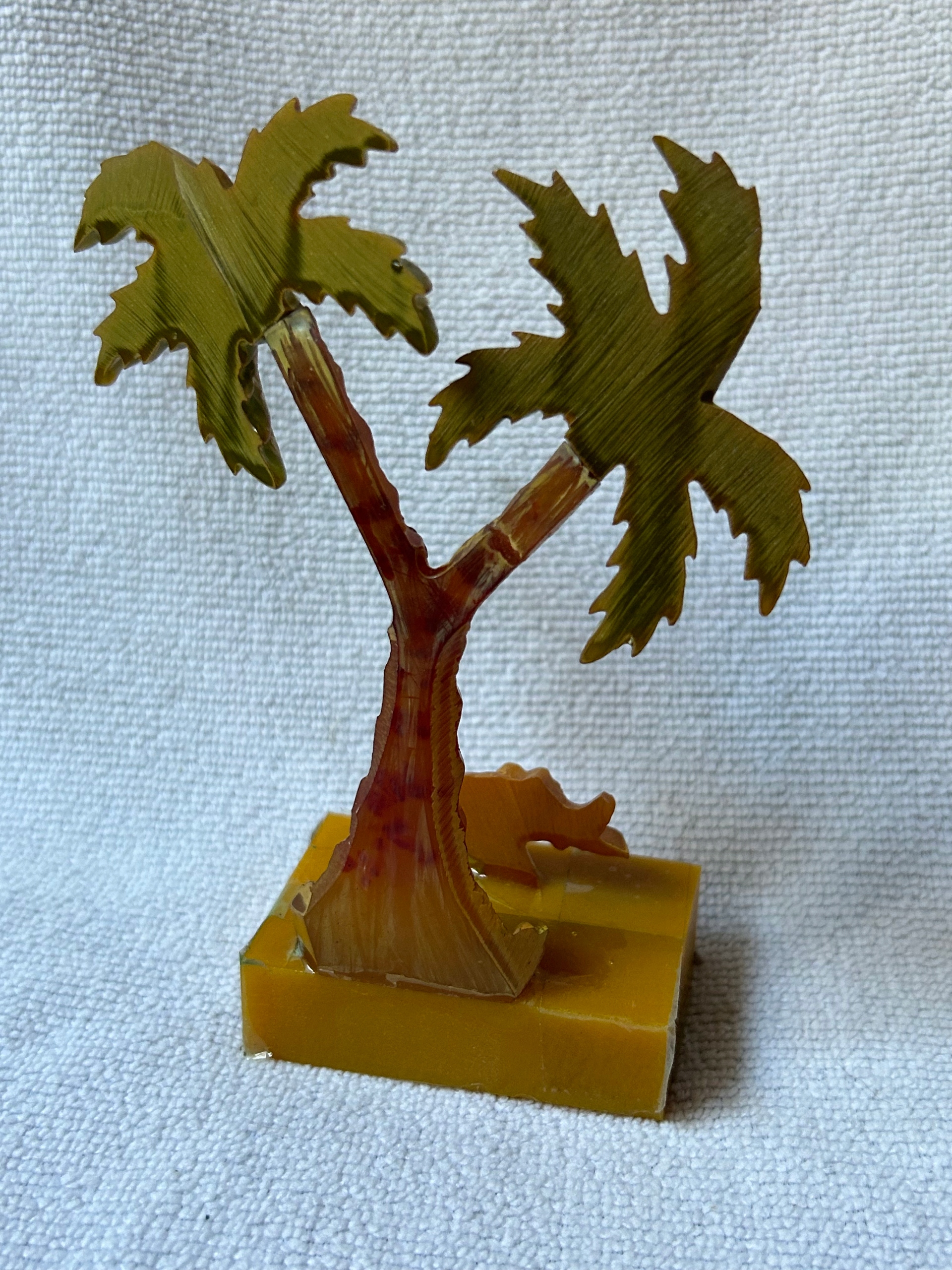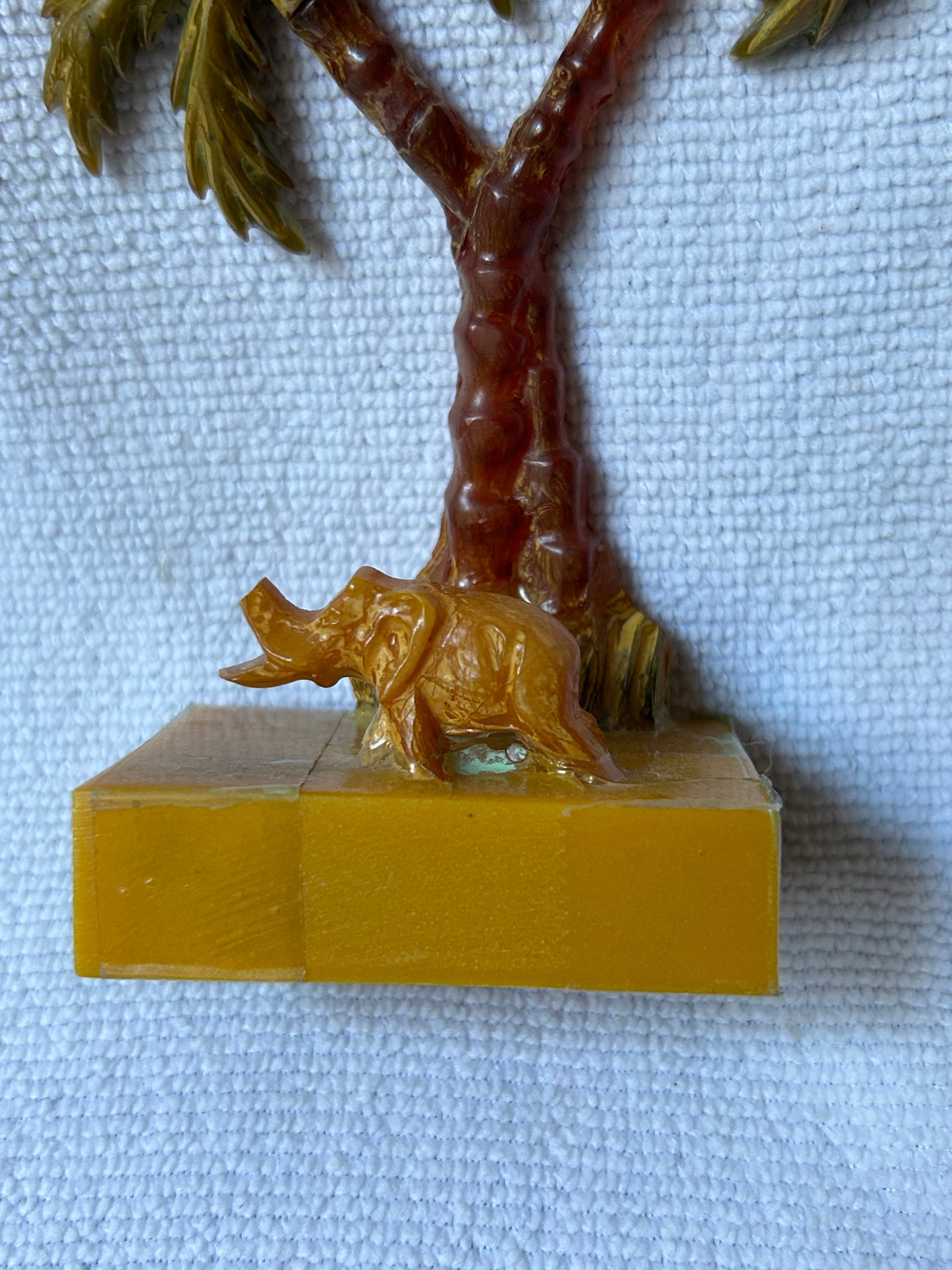 Ozdoba meblościanki bakielit bursztynowy SŁOŃ i PALMA
