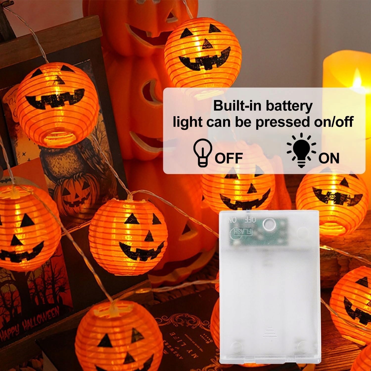 - IP44 Водонепроникний - Хеллоуїн -коробка акумуляторів має водонепроникну функцію IP44 і виготовлена з високоякісного ізольованого мідного проводу, відсік акумулятора розроблений з простим для використання гачків, незалежно від того, чи це штормова ніч або вологий ранок, це гарбуз і зовні, наприклад, Хеллоуїн, їхні тематичні події, трюки чи хитрощі.