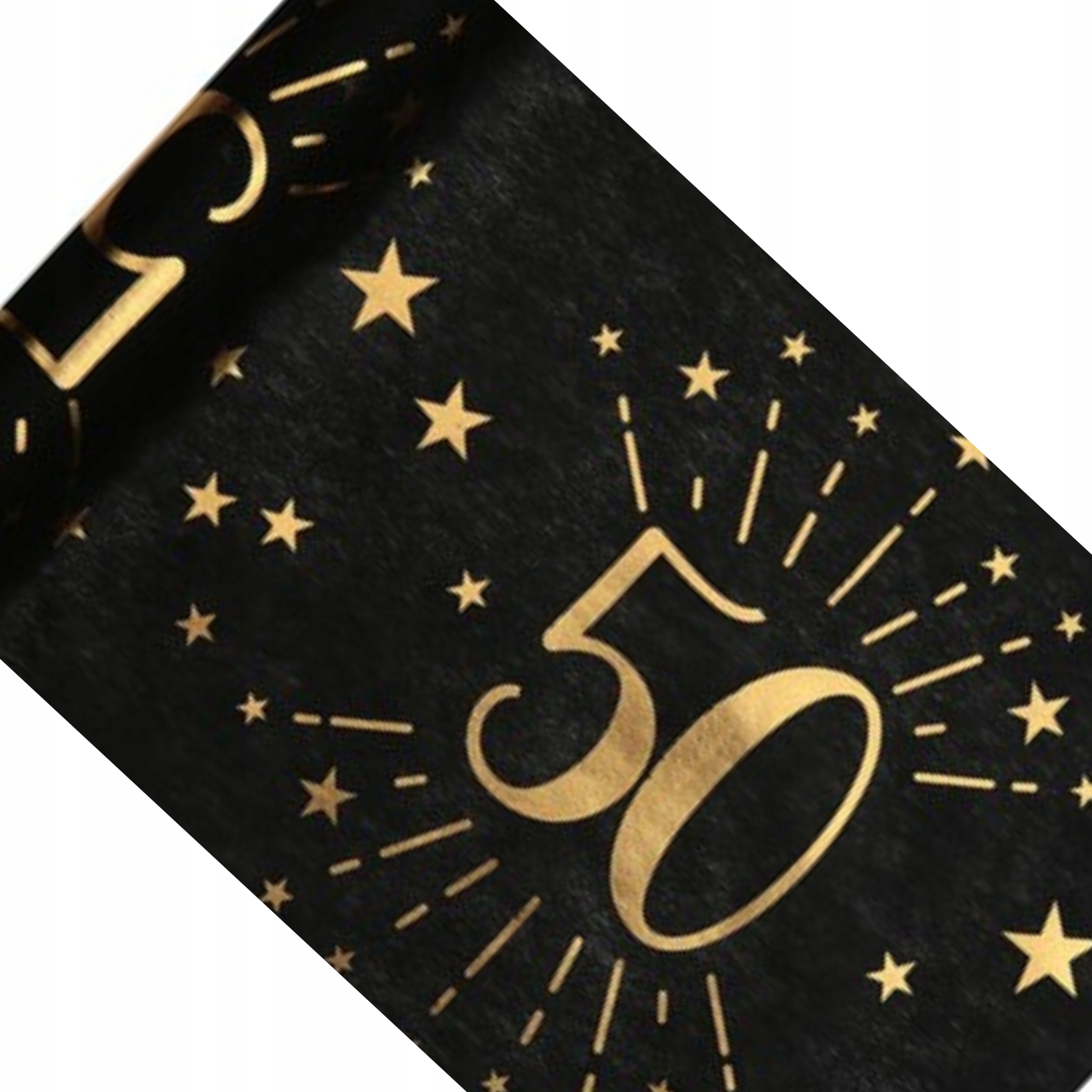 - Елегантний дизайн - Чорний фон із глянсовим, золотим принтом номера "50" та зірками - вражає гостей.