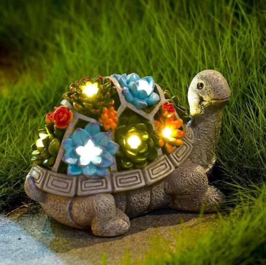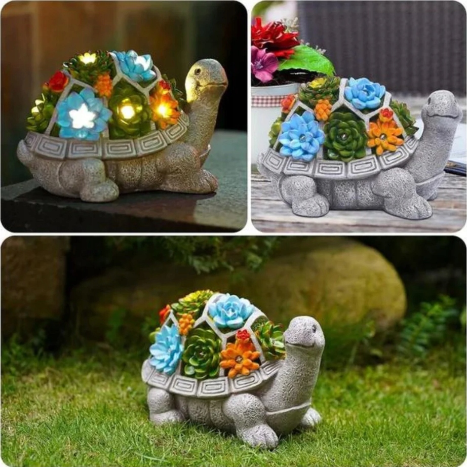 Додайте шарм до свого саду завдяки світлодіодному світлодіодному світлодіодному черепаху , що поєднує функціональність та декоративний характер. Ця пофарбована статуетка з барвистими сукулентами на броні -це унікальний декоративний елемент, який буде працювати як у саду, так і на терасі, балконі чи підвіконні.