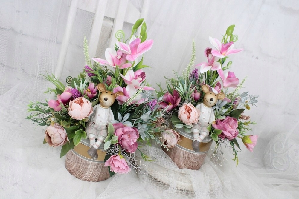композиції складаються вручну, тому розташування або тип прикрас та аксесуарів може дещо відрізнятися від фотографій. Однак стиль та кольори завжди зберігаються.