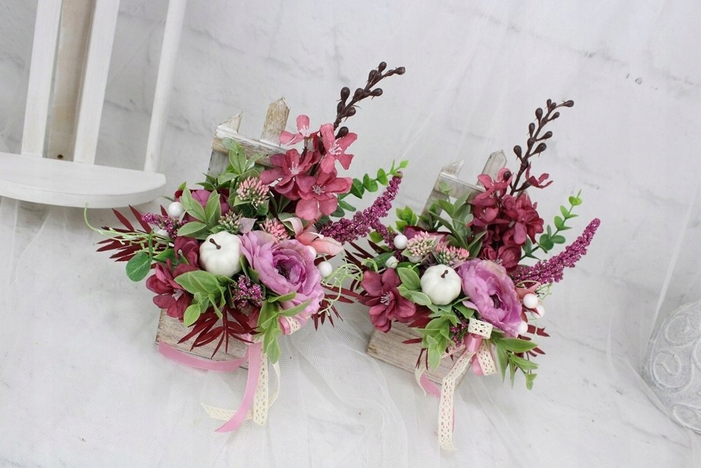 додатково прикрашені гарбузами, листям, декоративною травою та кольором, що відповідає стрічці.