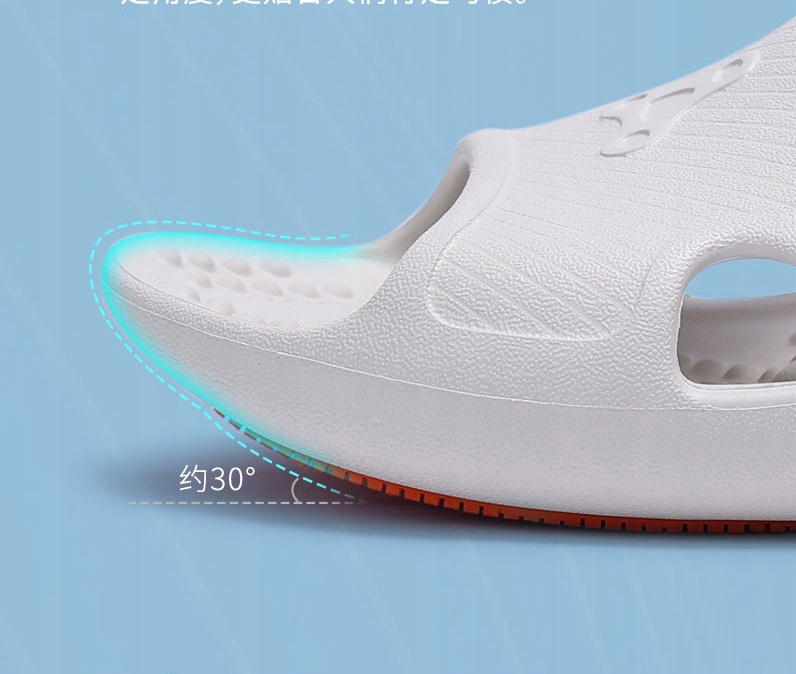 Таким чином, кінчик шльопанців профільовано вгору під кутом 30 градусів, що забезпечує ідеальне розташування пальців на шльопанцях