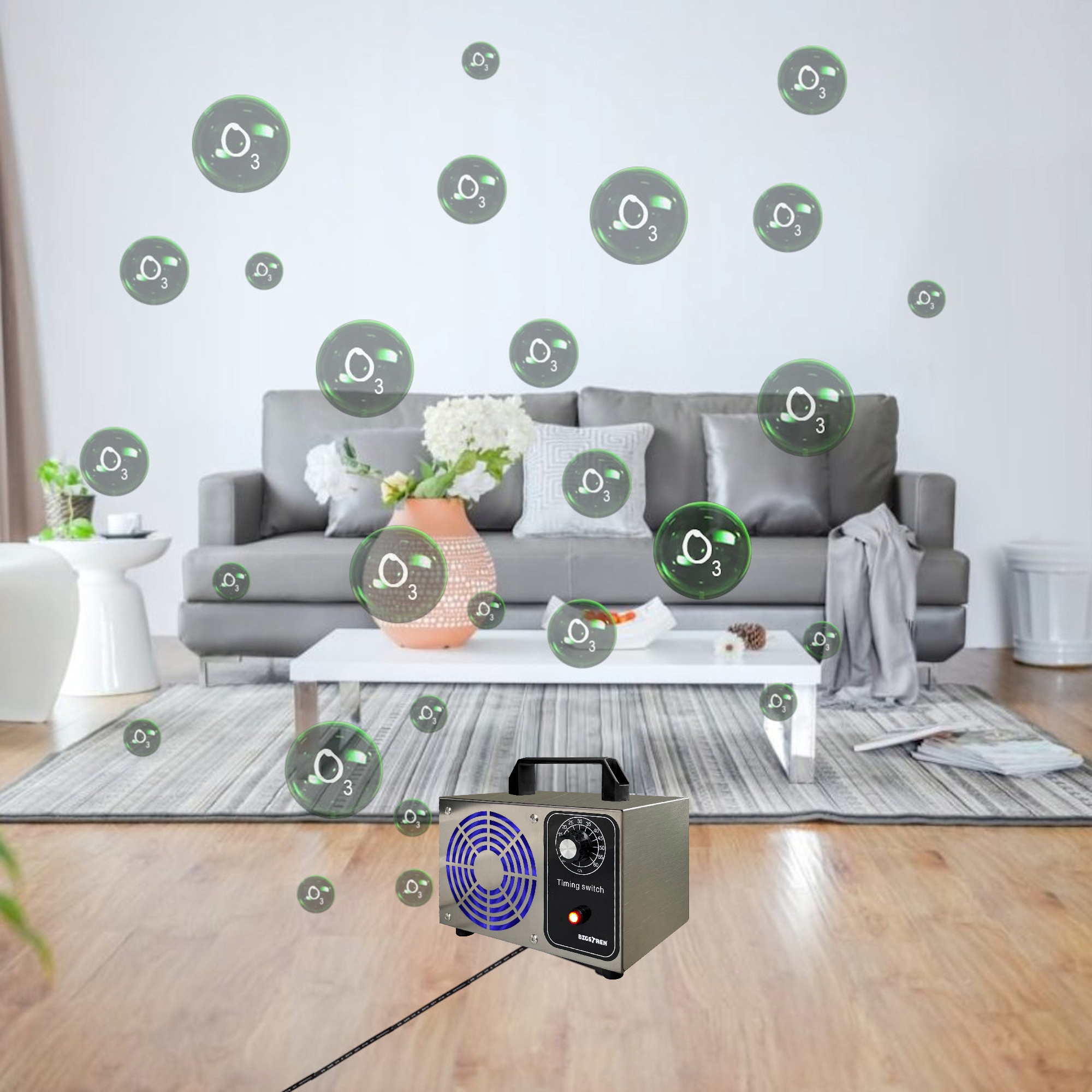 Вбудований вентилятор рівномірно розподіляє озон, а міцна сталева конструкція забезпечує довговічність і безпеку використання.