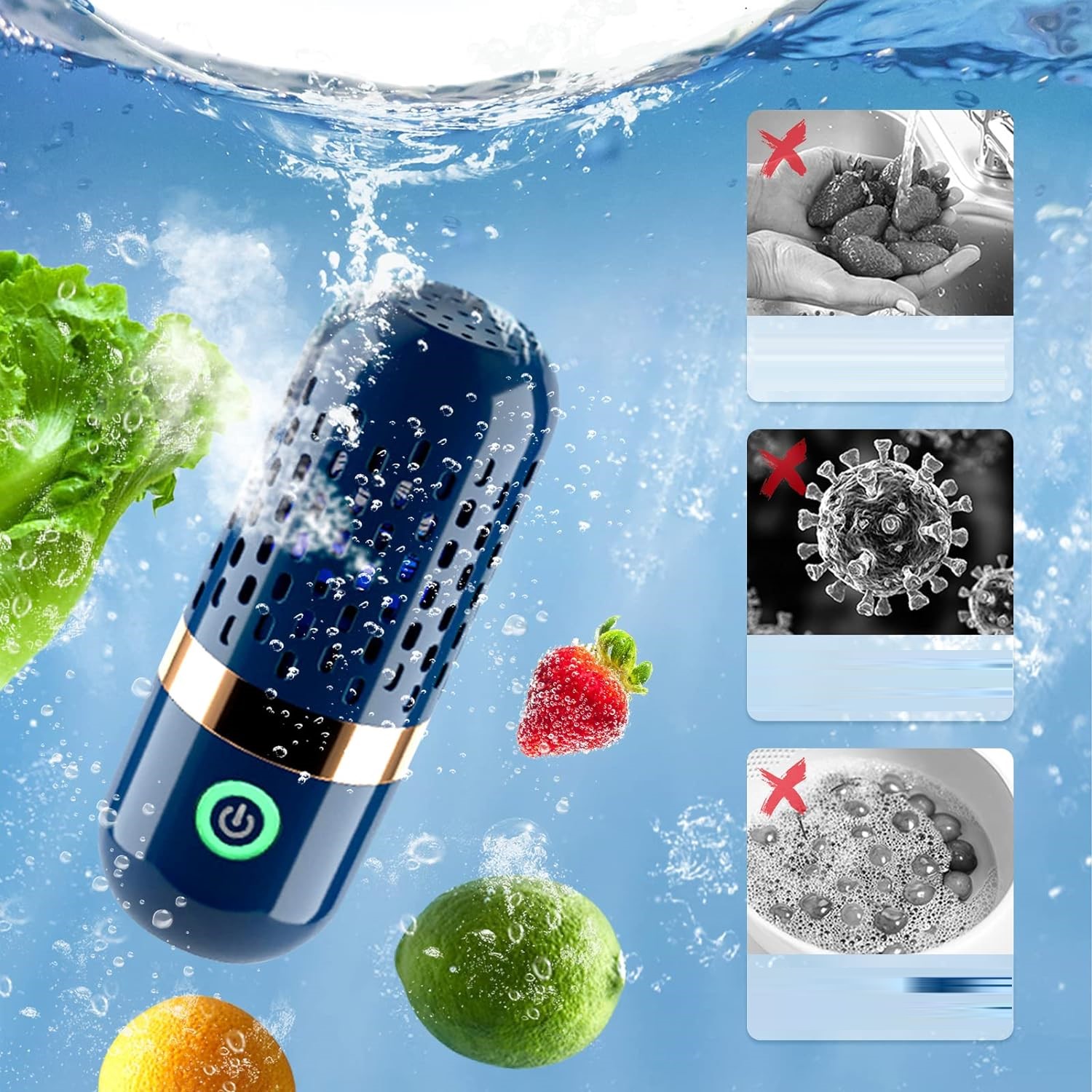 - Ідеально підходить для очищення овочів, фруктів, м'яса та морепродуктів, ця шайба видаляє мікроорганізми та пестициди з поверхні їжі. Виключає шкідливі бактерії та паразитні яйця і не потребують використання хімічних речовин.