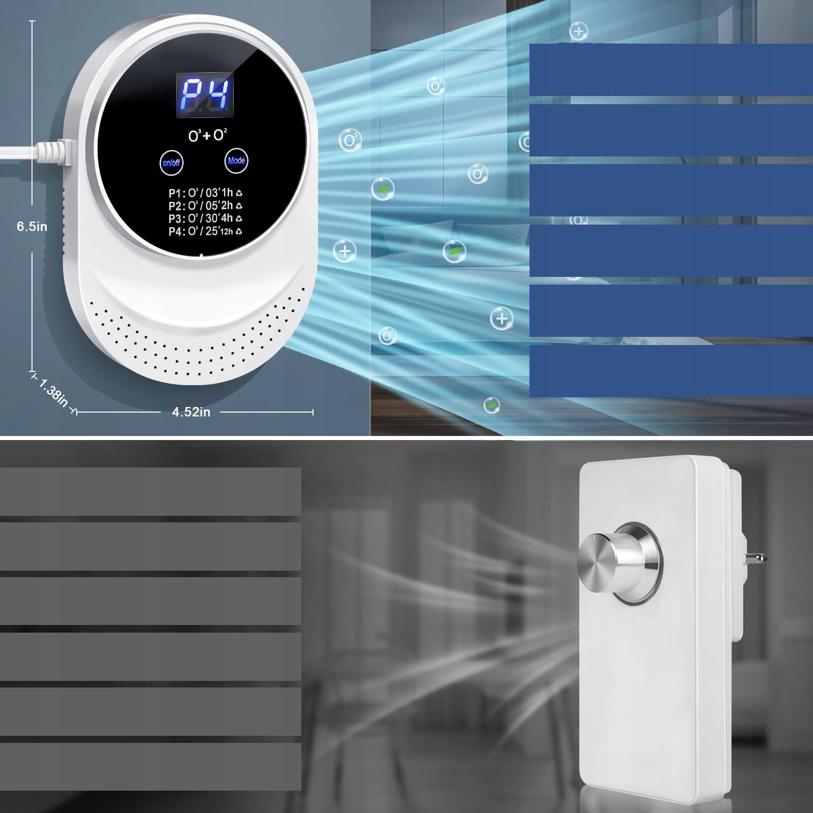 Площа застосування та 4 режими: генератор озону можна використовувати для очищення приміщень з площею від 5 до 30 м². Ви можете відрегулювати пристрій до розміру своєї кімнати. Натисніть кнопку "увімкнення/вимкнення", щоб увімкнути або вимкнути пристрій. Індикатор режиму спалахує, щоб вказати на те, що пристрій працює. Якщо індикатор режиму загоряється, це стан готовності пристрою. Після включення натисніть кнопку "Режим", щоб вибрати режим циклу P1, P2, P3 або P4. Це не вимагає фільтра і економить гроші: просто підключіть джерело живлення; може генерувати озонові та негативні іони; Вам не потрібно замінювати фільтр. Він підходить для багатьох невеликих просторів, таких як спальні, кухні, пральні, дитячі кімнати, кімнати для тварин, ванні кімнати, готелі, квартири та шафи. Пристрій дезодорації та дезінфекції дуже маленький і легкий, простий у встановленні та готова до подарунка.