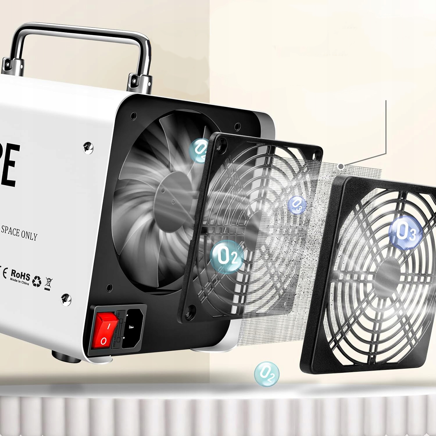 Покращений очищувач повітря за допомогою генератора озону виробляє 300 000 мг озону на годину, а його очисний діапазон досягає 300 м². Він негайно генерує велику кількість озону, ефективно видаляє неприємні запахи та дезінфікує простір, захищаючи його від цвілі, бактерій, грибів та летких органічних сполук (ЛОС), таких як формальдегід. Ідеально підходить для будинків, спалень, офісів, готелів, ресторанів, автомобілів тощо, створення чистого та комфортного середовища.