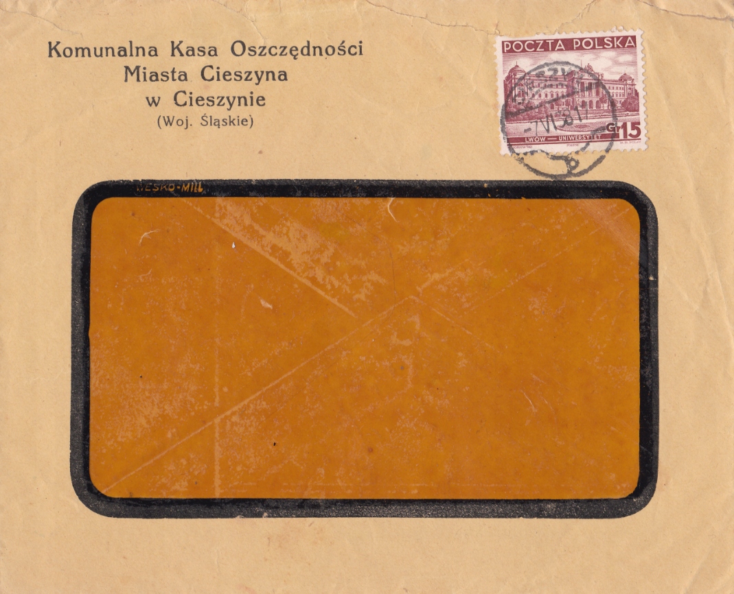 P033 КОНВЕРТ ОЩАДНА КАСА ЦЕШИН 1938 ДРУГА ПОЛЬЩА