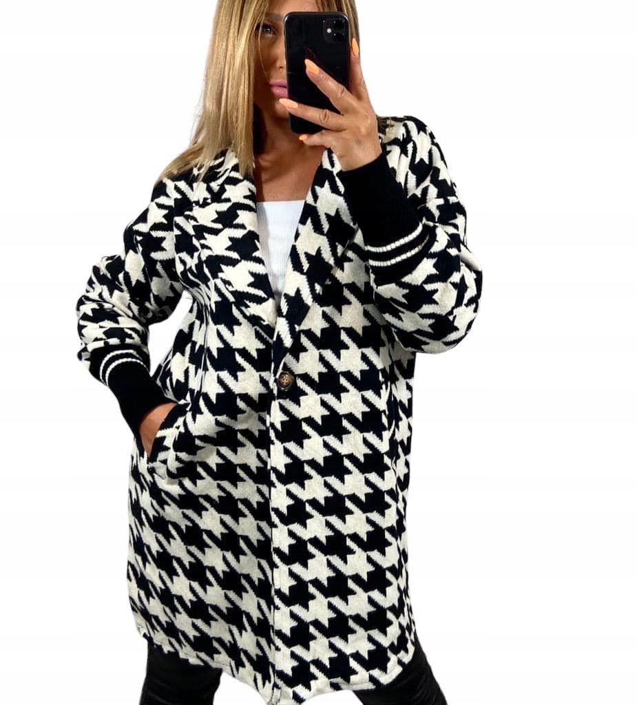 Елегантне однобортне пальто з класичним візерунком у вигляді гусячих лапок. Його унікальним елементом є стильний комір, який надає йому вишуканого характеру. Рукава цього пальто ретельно оброблені широким манжетом, що надає йому унікального та модного вигляду. Завдяки цим деталям пальто стане одночасно стильним і практичним доповненням вашого гардеробу. Ідеально підходить для різних випадків, додаючи елегантності будь-якому стилю.