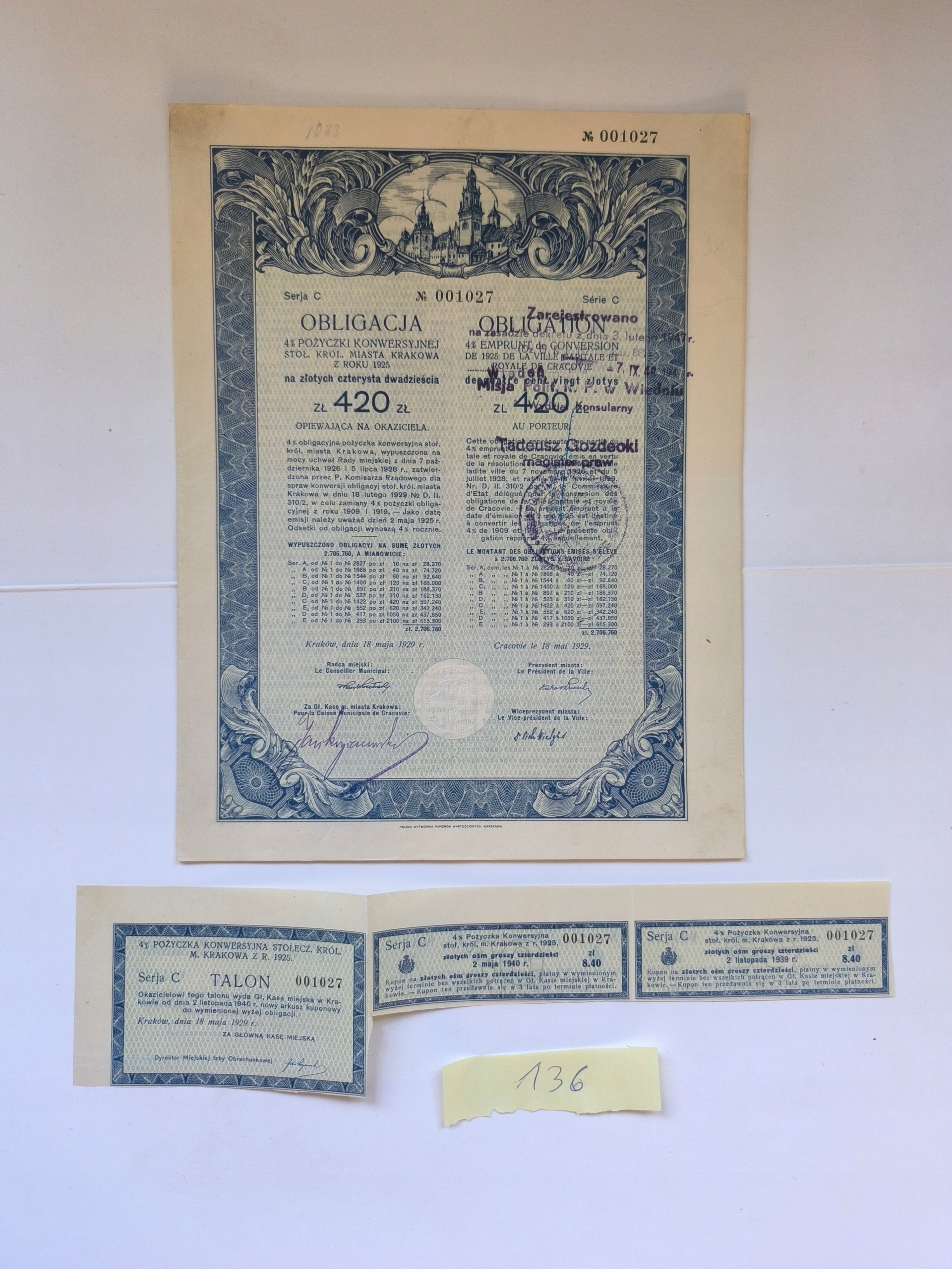 Просматривая «P136# Бонд Королевского города Краков», вы можете быть уверены, что данный товар из каталога «[rubrica_name]» будет доставлен из Польши и проверен на целостность. В цене товара, указанной на сайте, учтена доставка из Польши. Внимание!!! Товары для Евросоюза, согласно законодательству стран Евросоюза, могут отличаться упаковкой или наполнением.