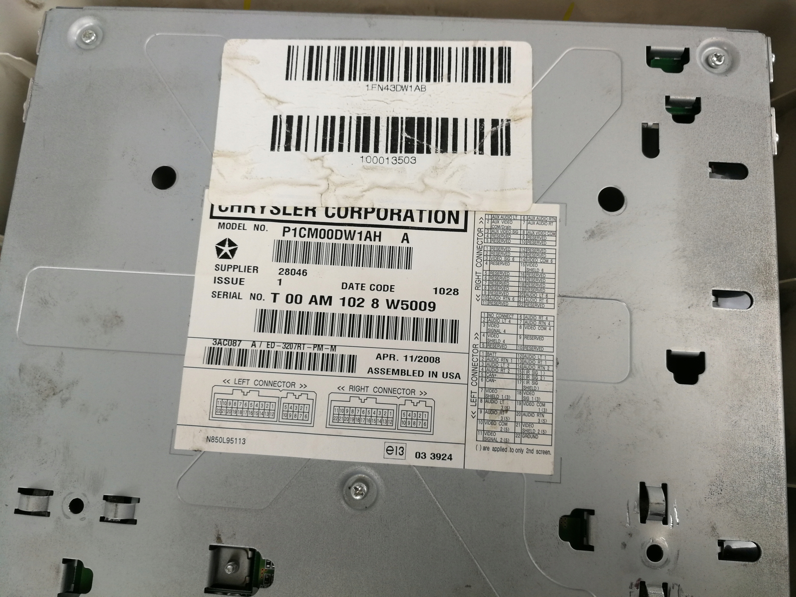 P1CM00DW1AH DVD Display Monitor Monitor TV Dodge Drowan 2008- EU