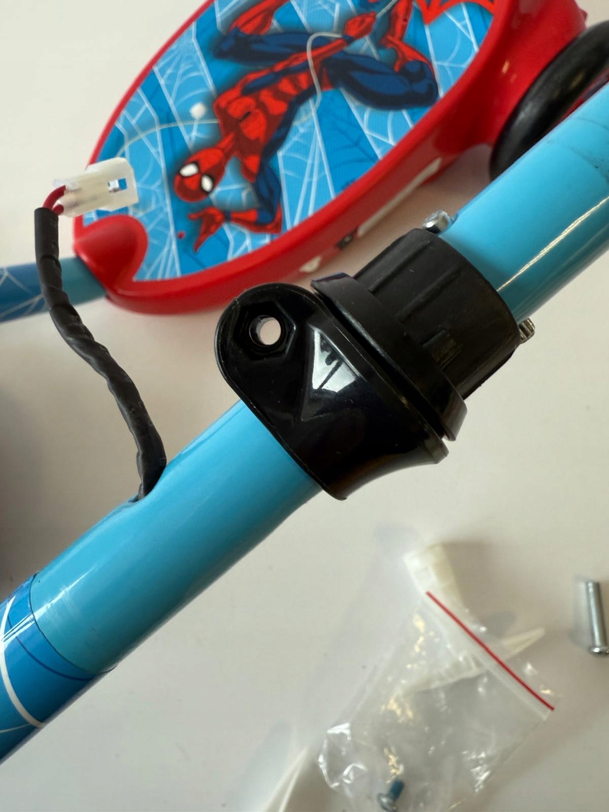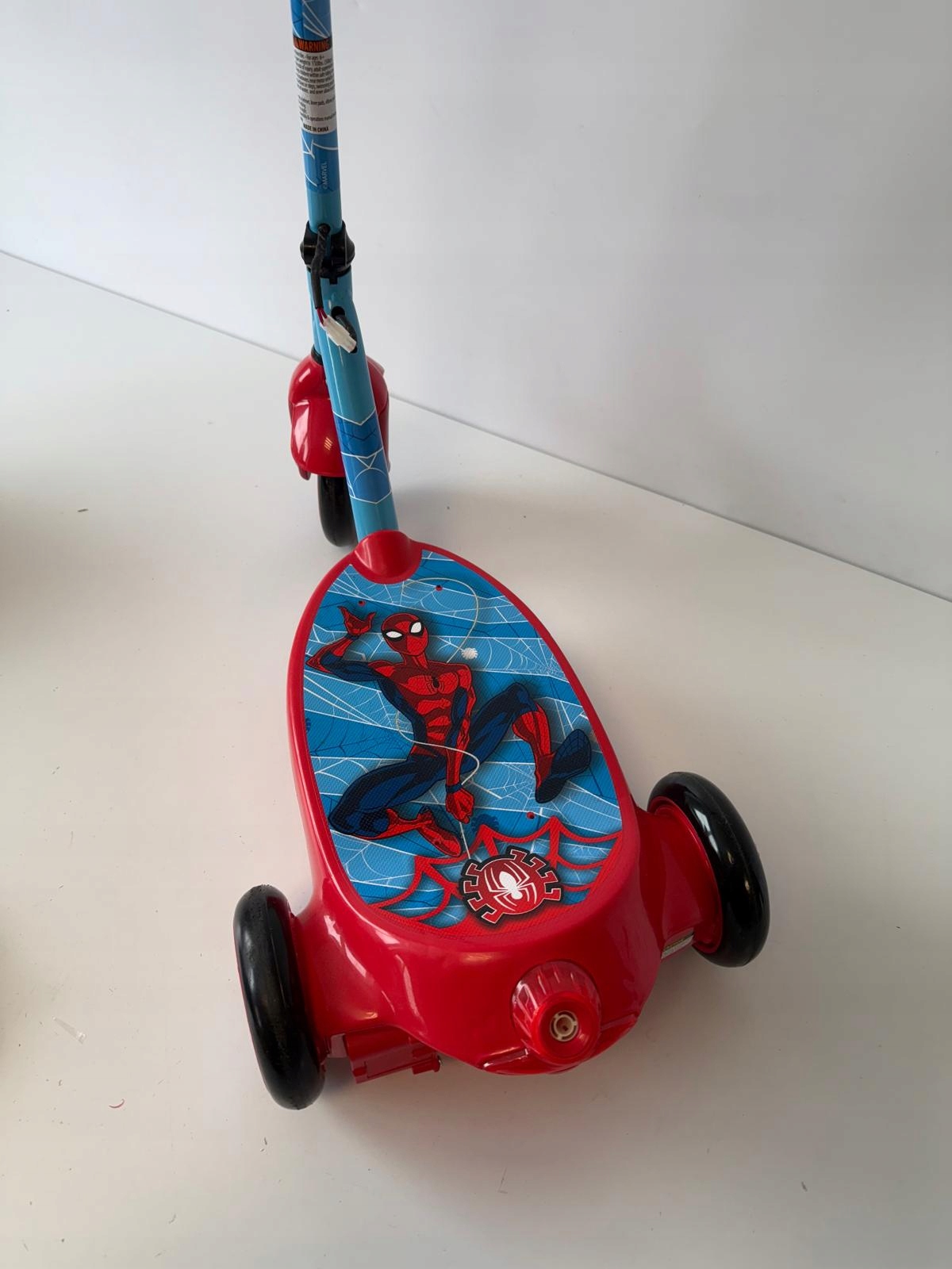 - Офіційний самокат Marvel Spiderman - ідеальний варіант для малюків і малюків. Скутер рухається зі швидкістю до 2 миль/год і оснащений стабільною безпечною платформою для навігації перших водіїв. Завдяки внутрішньому акумулятору, що перезаряджається, ви можете насолоджуватися до 40 хвилин.