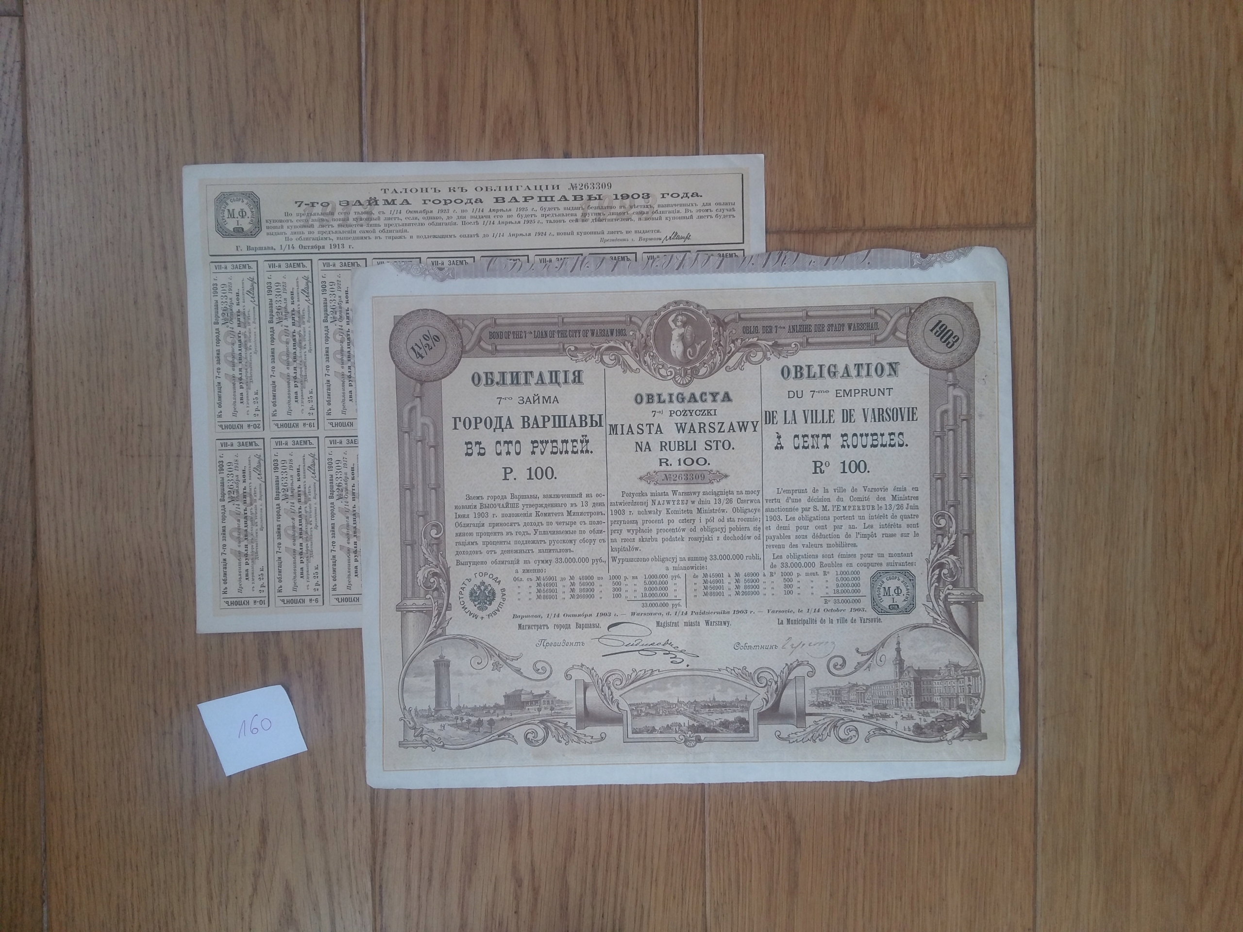 Покупая «P8#ВАРШАВСКАЯ ОБЛИГАЦИЯ 1903 года №100 РУБЛЕЙ - ОТЛИЧНЫЕ ВИДЫ» данный товар из каталога «цінні папери» вы можете быть уверены, что после оформления заказа, доставки в Украину, вы получите именно то, что заказывали, в оговоренные сроки и европейского качества.