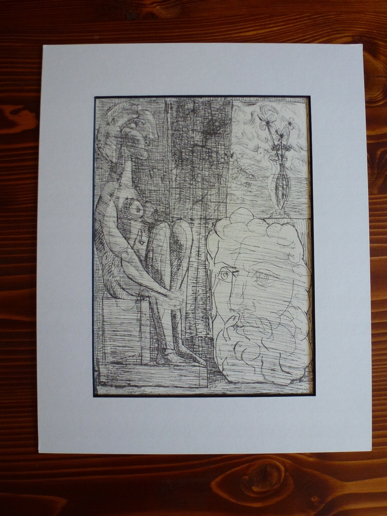 Я повинен запропонувати ілюстрацію Пабло Пікассо (1881-1973), опублікованому Гердом Хатже, Штутгарт із серії "Suite Vollard", видання, опубліковане під час життя та згоди Художник у 1956 р. на "від років". Представлений у Passe-Partout, підготовлений для попередньо визначеного кадру з картоном 30 см х. Усі наступні фотографії зроблені мною та показують справжню умову об'єкта. Я рекомендую.