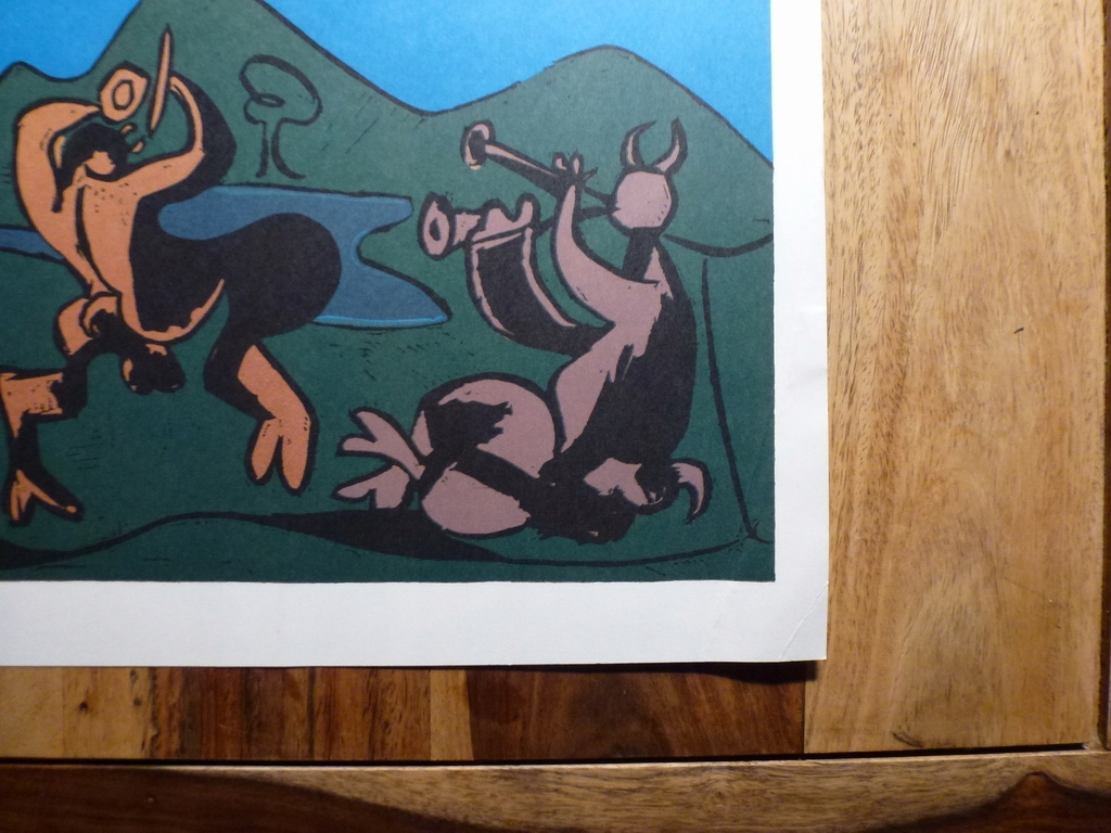Я мушу запропонувати зміщення літографії, опублікованої в 1988 році Гаррі Н. Абрамс Інк. ілюстрація, опублікована на папері "з років" з високою вагою, інша сторона розгорнулася. видання, надруковане в Японії. положення ніколи не пов'язане - згинання в нижньому лівому куті . Усі наступні фотографії зроблені мною та показують справжню умову об'єкта. Рекомендую.