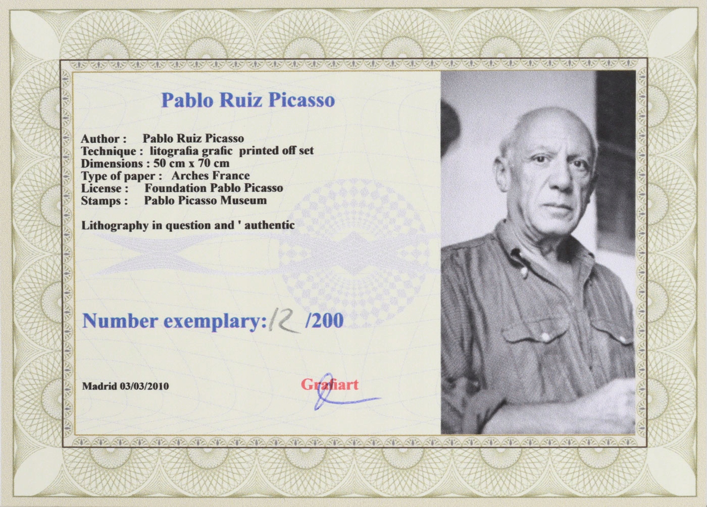 Автор: Пабло Пікассо (1881 - 1973) малював і писав з дитинства, спочатку навчаючись у свого батька , художник і куратор музею в Малазі, а потім у школі образотворчого мистецтва Ла Лонха в Барселоні. У 1900 році він вперше поїхав до Парижа, а в 1904 році оселився там назавжди. Його творчість у першій чверті століття поділяється на періоди, відзначені специфічними рисами творів, такими як кольори, тип деформацій тощо: блакитний період (1901-1903), рожевий період (1905-1906), докубістичний період (1907-1909), кубістичний період (1909-1917), класичний період (1918-1924). Після того, як він досяг і розвинув мову власних форм, наступні етапи творчості Пікассо позначені періодами інтересу до тієї чи іншої теми чи техніки. Так, виділяється період «великих купальщиць» (1927-1937), що йде паралельно періоду активізації інтересу художника до скульптури (1930-1935), період, ознаменований створенням «Герніки» (1937-1939). ), періоди проживання та творчості в таких місцях, як Валлорі (1947-1954), Канни та Вовенарг (1955-1961), Мужен (1961-1973) - усі на півдні Франції. Інший, настільки ж законний спосіб організувати хронологію творчості Пікассо — позначити її етапи іменами важливих жінок у його житті. Важливою, але побічною темою його творчості була графіка, якою він займався від самого початку своєї творчості до останніх років.