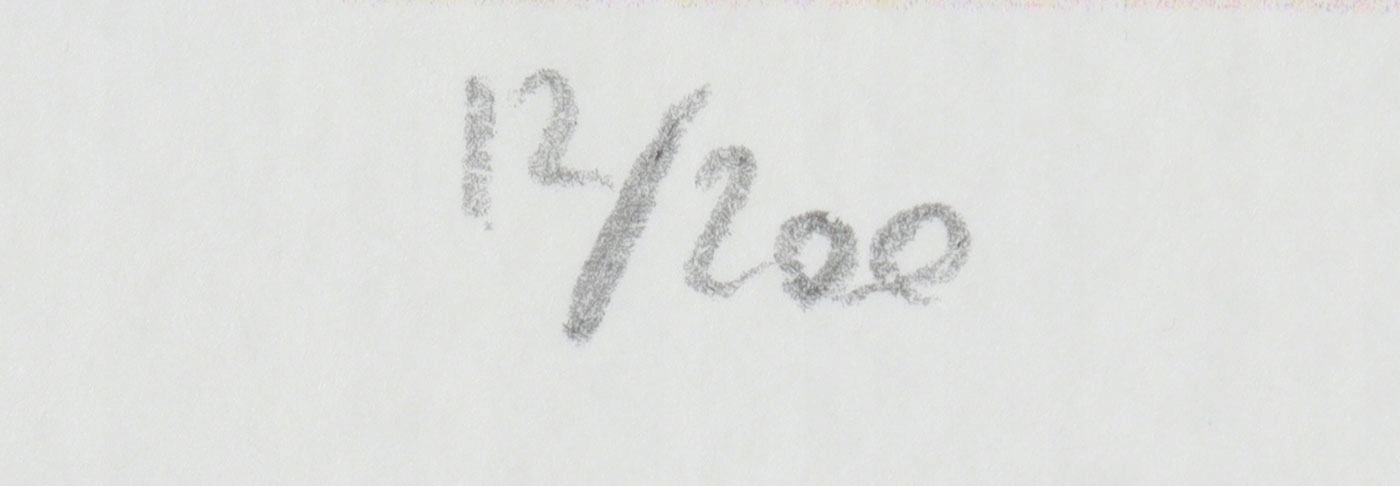 Техніка: літографія / папір. Робота підписується на дошці в нижньому правому куті композиції та нумерується олівцем у нижньому лівому кутку 12/200. До роботи додається сертифікат Grafiart.