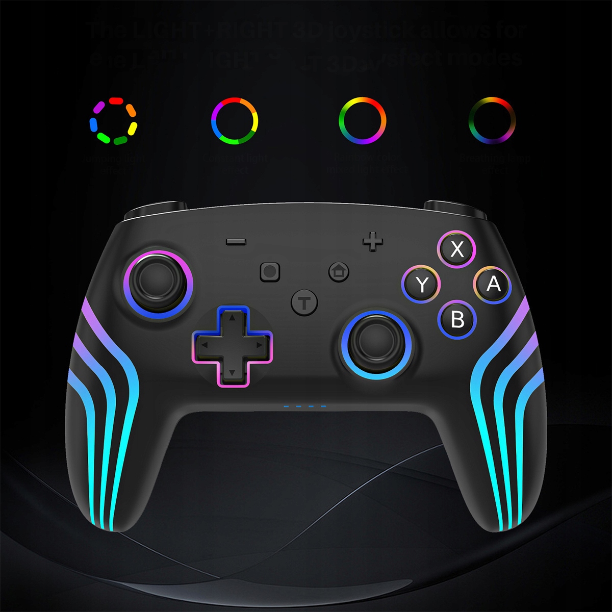 ⭐bezpisty-wire pro do do do перемикач/перемикач 2/lite/oled/pc, Gamepad з 7-кольоровим, ргб-підсвічуванням, що змінюють кольори/подвійні вібрації/6-код-гіроскоп/турбо, ергономічно, точний джойстик (чорний) ⭐