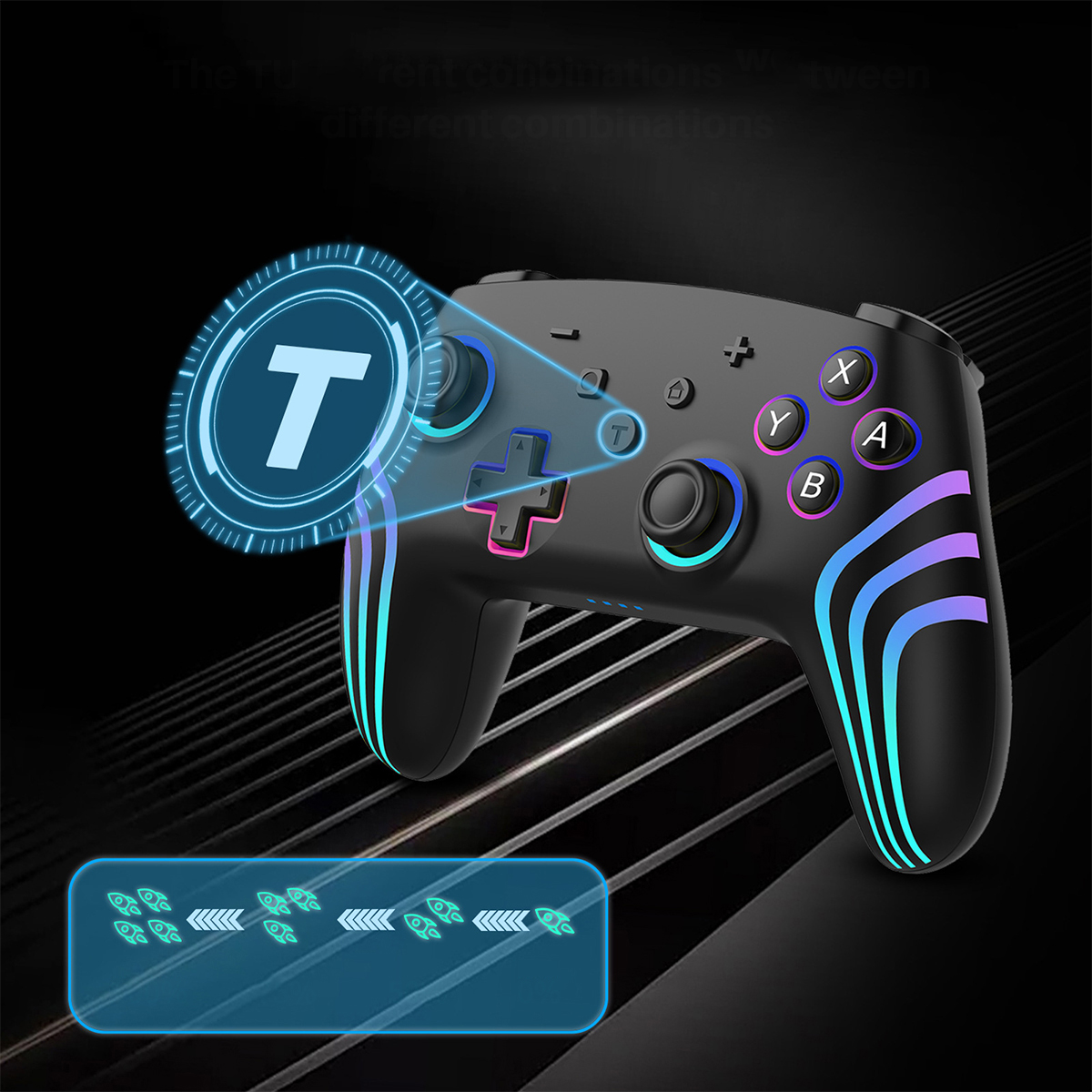 Контролер Switch Pro оснащений двома вібраційними двигунами з трьома точними рівнями вібрації: жоден, низький та високий, що забезпечує відмінний відгук і значно покращує досвід гри. Контролер пропонує два режими: автоматичний турбо та ручний турбо та три регульовані швидкість турбо (5-10-15 Гц), що робить його ідеальним для ігор FPS.