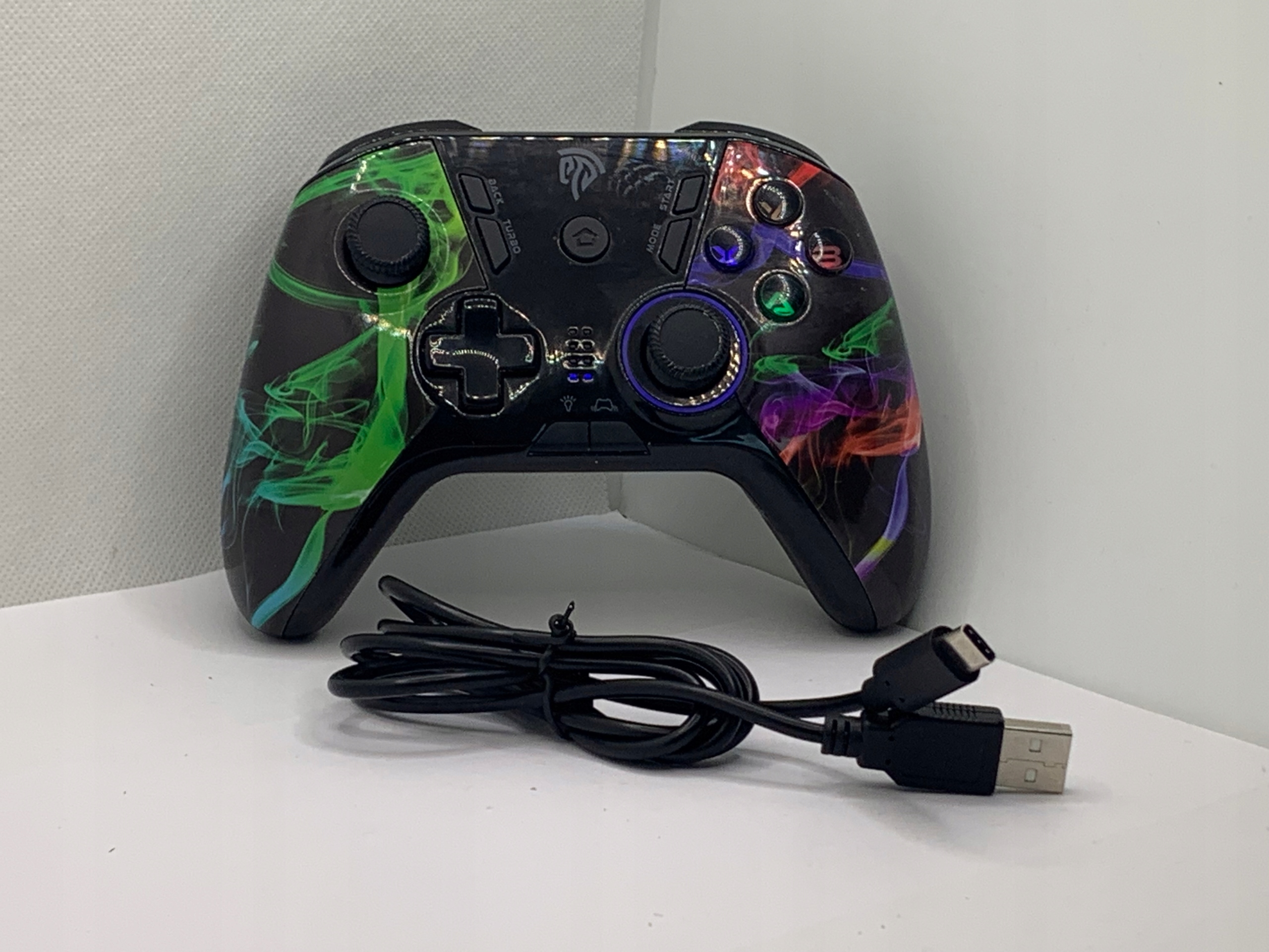 esysmx pc/ps3/nintendo з anthy кнопкою та простим джойстиком з модним та вражаючим світлодіодним освітленням , 5 регульованим рівнем світла. і підтримує функцію гіроскопічної осі. Дуже чутливе виявлення кнопок забезпечує точні враження від гри, повернувши контролер гри. Подвійні аналогові стрижні та розширювані тригери Забезпечте точний контроль руху