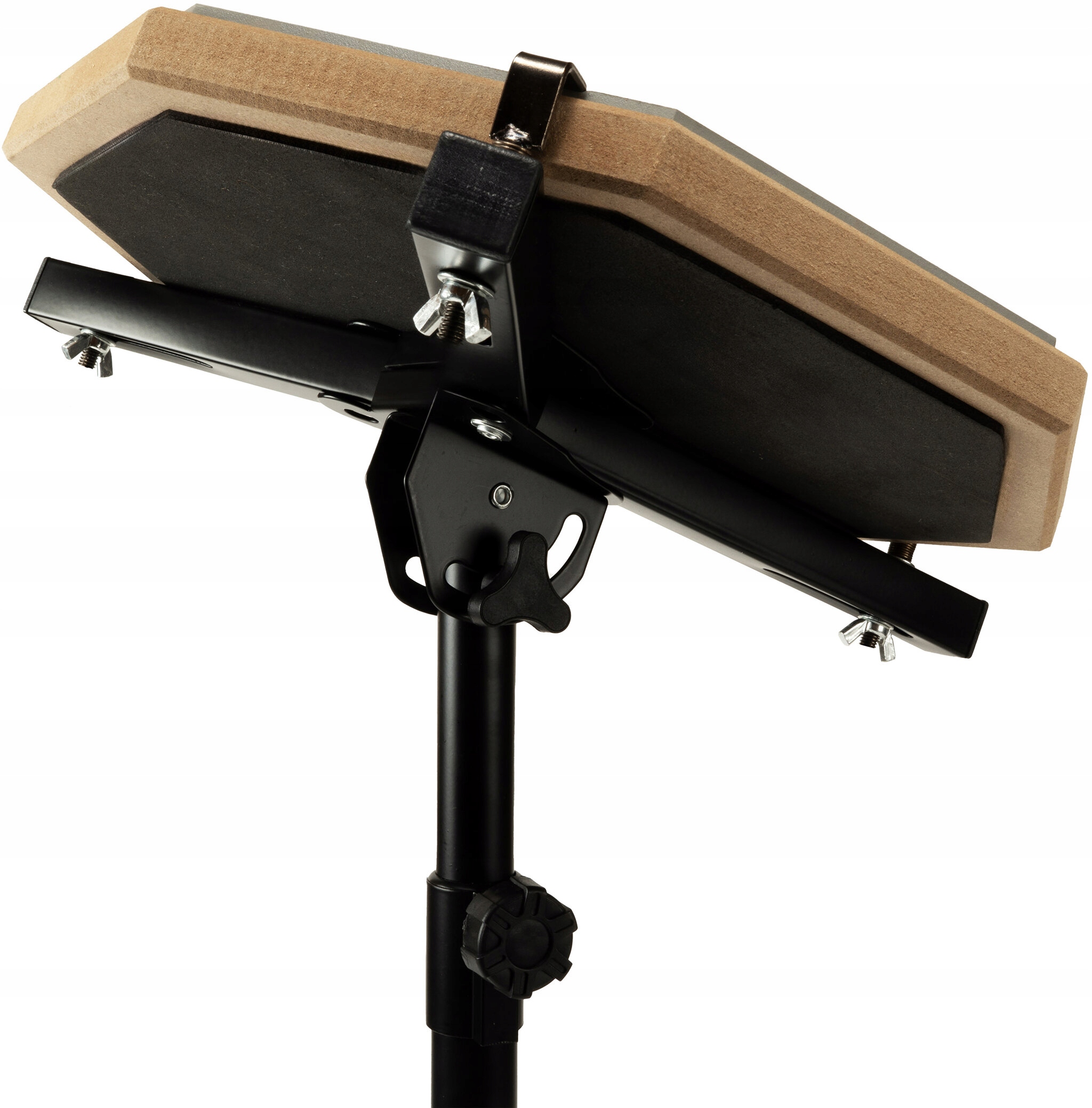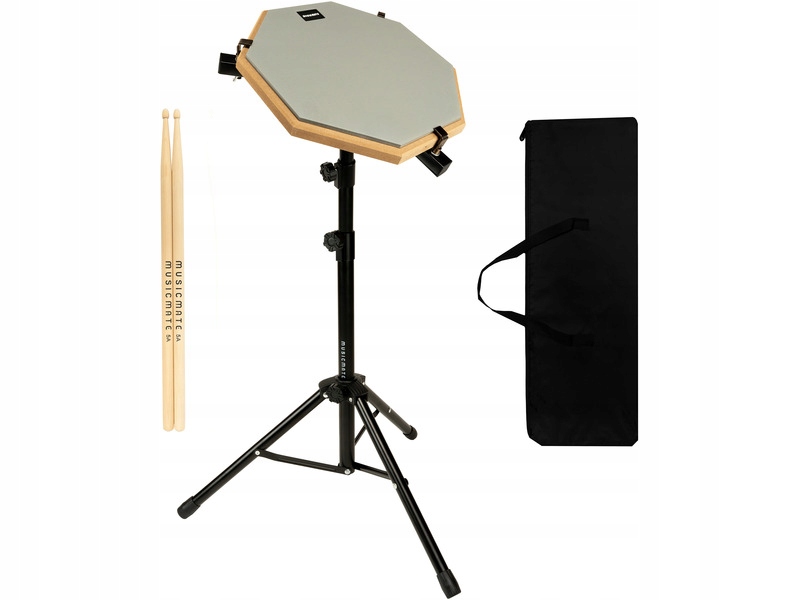 В набір входить стабільний штатив з регулюванням висоти від 48 до 80 см, що дозволяє зручно переставлятися в положення сидячи або стоячи. Підкладка легка, її легко пакувати - чохол із ручкою, що входить у комплект, полегшує перенесення. Завдяки цьому PercuPad стає практичним компаньйоном для занять у студії, музичній школі та під час подорожей. У набір також входять барабанні палички, що дозволяє приступати до тренувань відразу після розпакування.