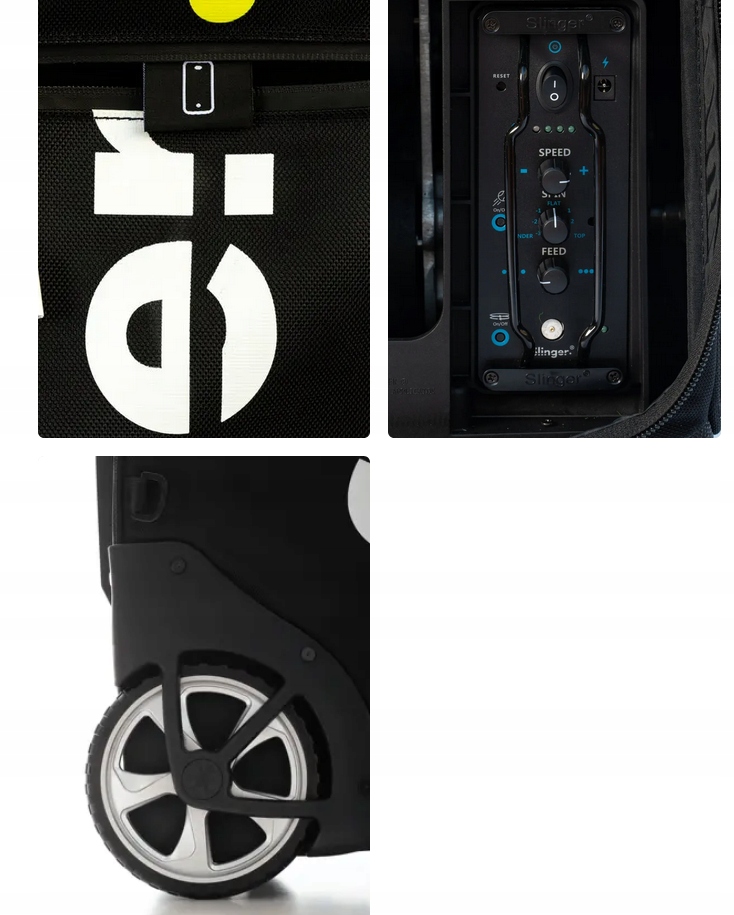Новий Slinger padel ball launcher ідеально підходить для тренувань будь-якого рівня. Він оснащений системою з двох двигунів і двох роликів, які полегшують обертання м'яча і відпрацювання коротких, топспінових і плоских ударів. Він також має осцилюючу платформу, яка дозволяє використовувати широкий діапазон кутів запуску.