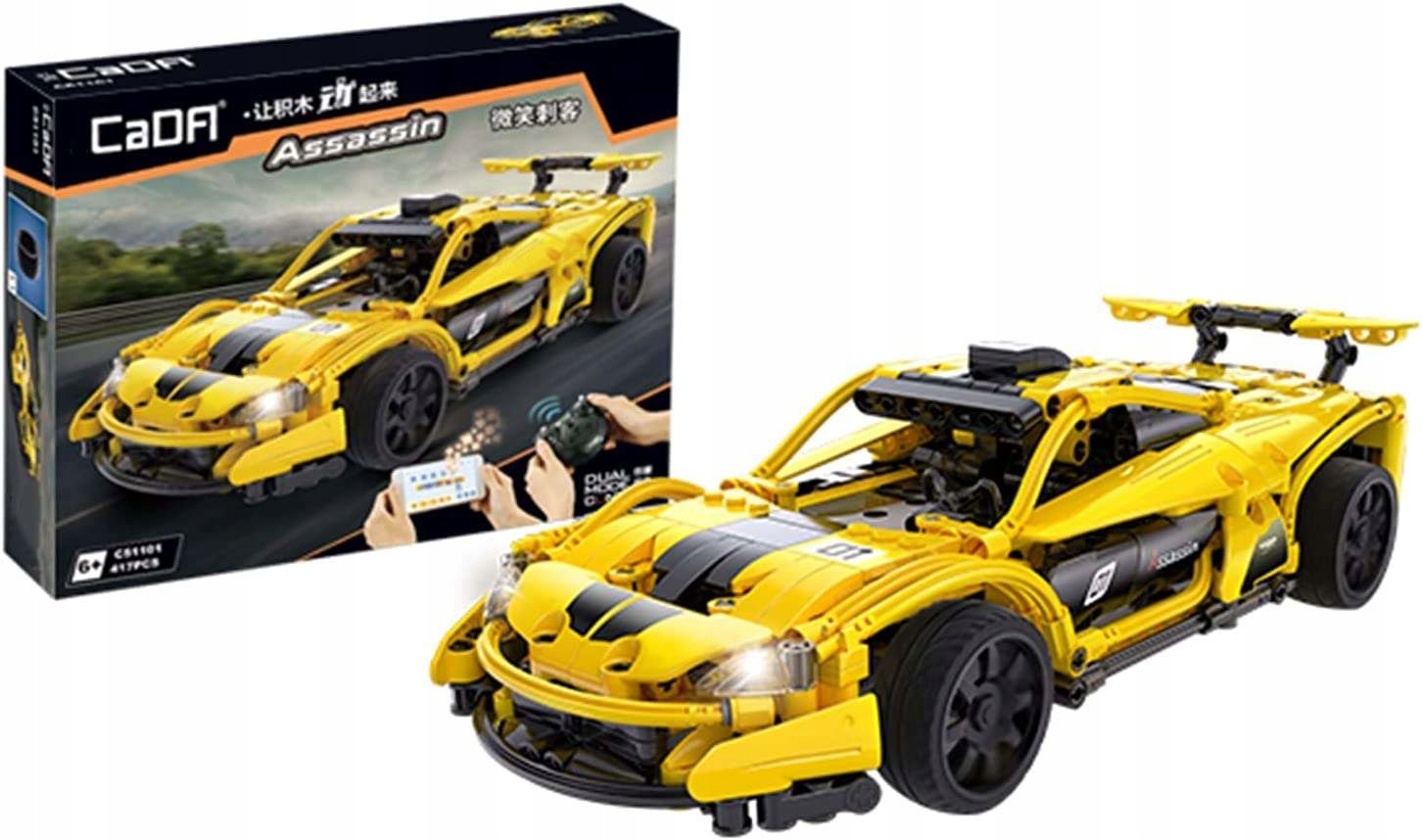 CADA Construction Blocks Racer Автомобіль на дистанційному керуванні жовтий RC автомобіль Dual Mode Control Assassin спортивний автомобіль 417 елементів