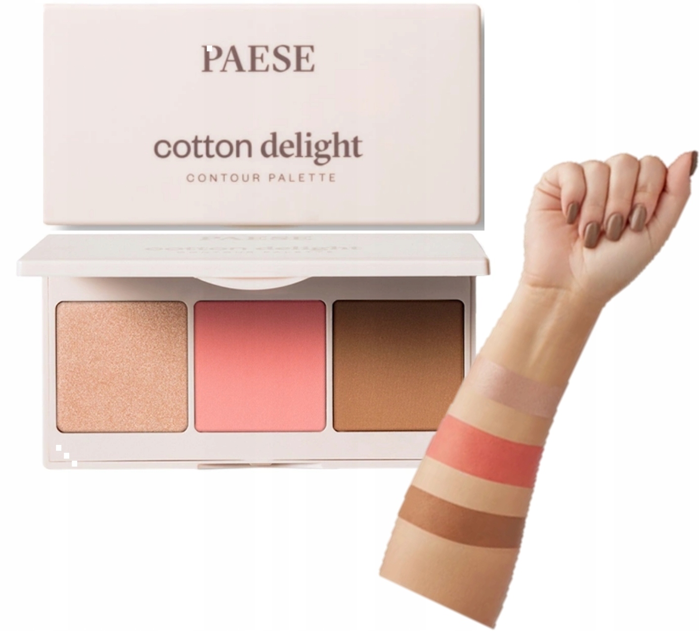 Paese Cotton Delight — це контурна палітра, яка дозволяє створити повний макіяж обличчя за допомогою одного косметичного засобу. Містить матовий бронзер, рум'яна та хайлайтер, завдяки чому дозволяє точно підкреслити риси обличчя, зігріти колір обличчя та виділити природне сяйво. Формула, збагачена олією насіння бавовни, забезпечує оксамитову консистенцію та легке нанесення без смуг. Косметика ідеально підходить як для денного, так і для вечірнього макіяжу.
