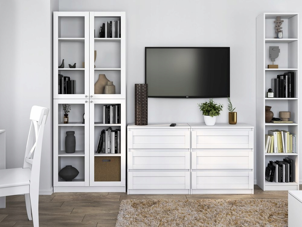 За заскленими дверима є 6 просторих полиць, які дозволяють ефективно організовувати та організовувати різні предмети - від книг та документів до прикрас.