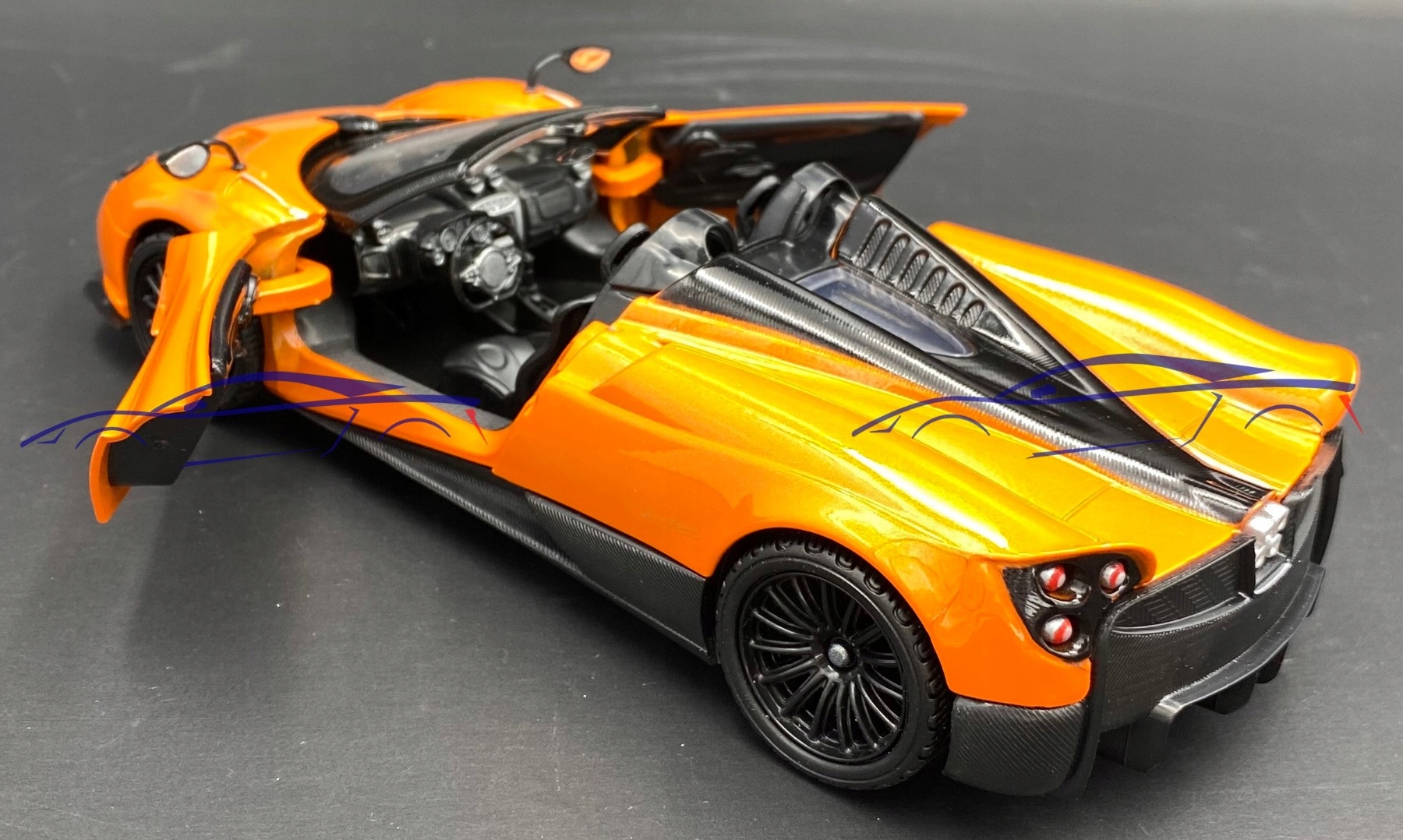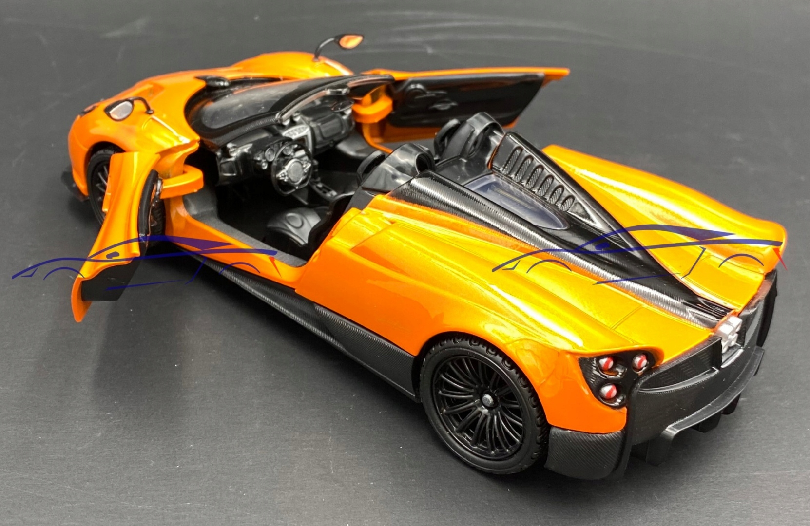 Модель Автомобіль Pagani відрізняється увагою до деталей. Має рухливі елементи - двері, колеса