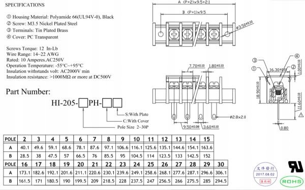 Паяльні штифти мають розміри 1,45 мм x 0,7 мм x 6 мм, відстань між паяльними штифтами становить 8,5 мм.