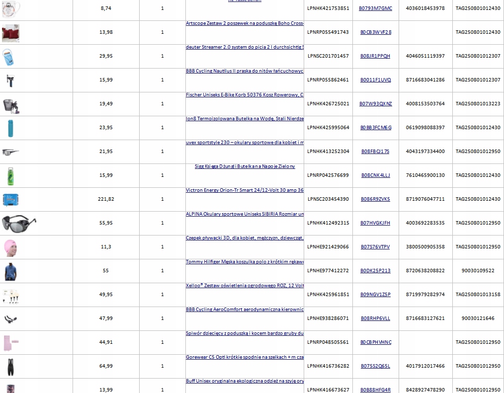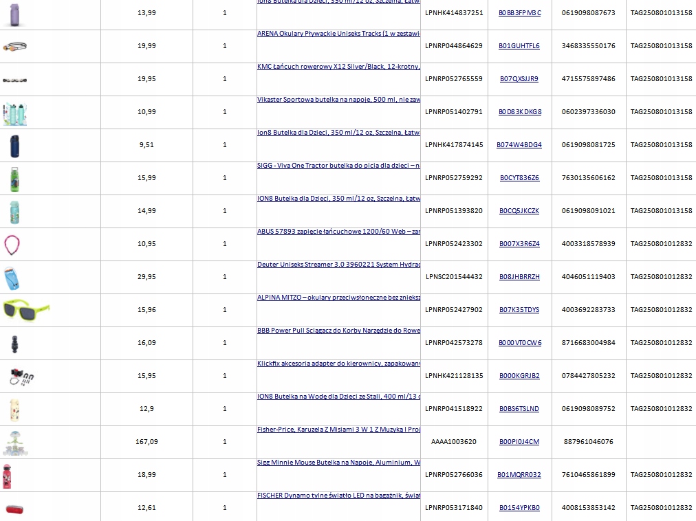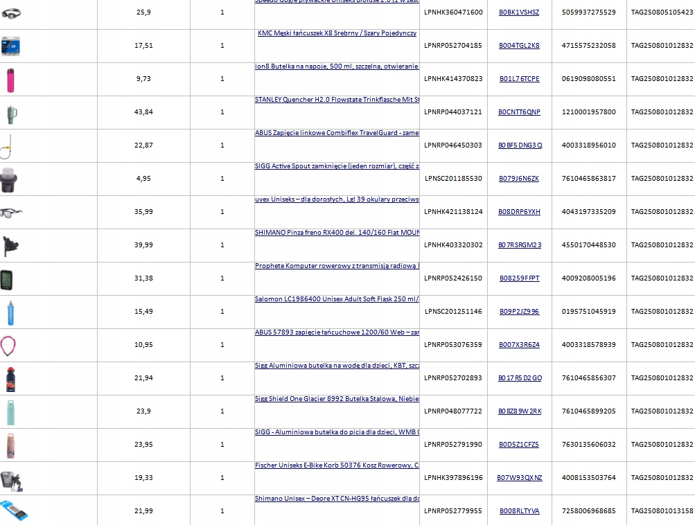 - Велосипеди та аксесуари - замок, велосипедні замки, деталі (ланцюги, гальма, рульові колеса), велосипедні комп’ютери.
