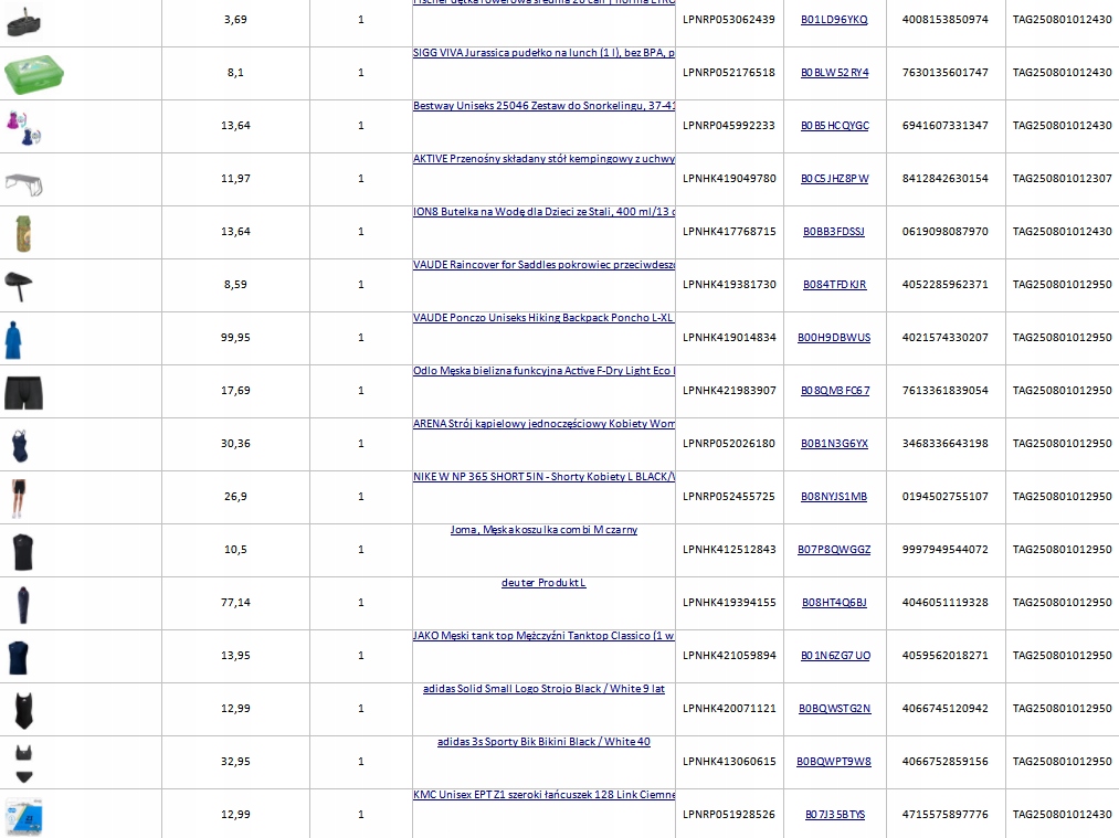 - Спорт та відпочинок - окуляри з плавання, піни, дайвінг аксесуари, фітнес -килимки, гантелі, велосипедні аксесуари.