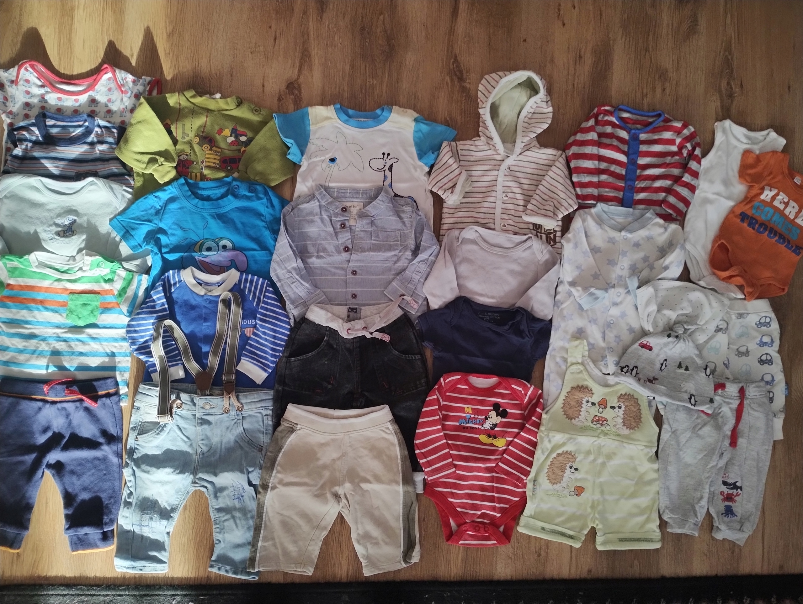 Одяг від 56 до 74 розміру, в хорошому стані, нормальні сліди прання та носіння, на 2/3 штук є плями
