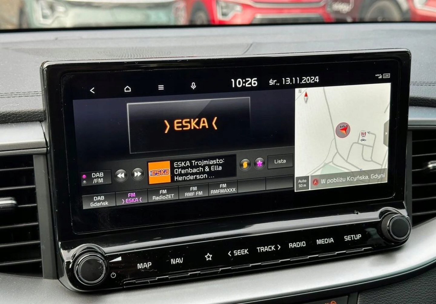 ▪ Супутникова навігаційна система з підтримкою польської мови, 10,25-дюймовий кольоровий сенсорний РК-екран, 7-річний безкоштовний план оновлення, цифровий радіотюнер DAB, інтерфейс